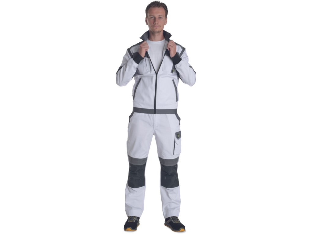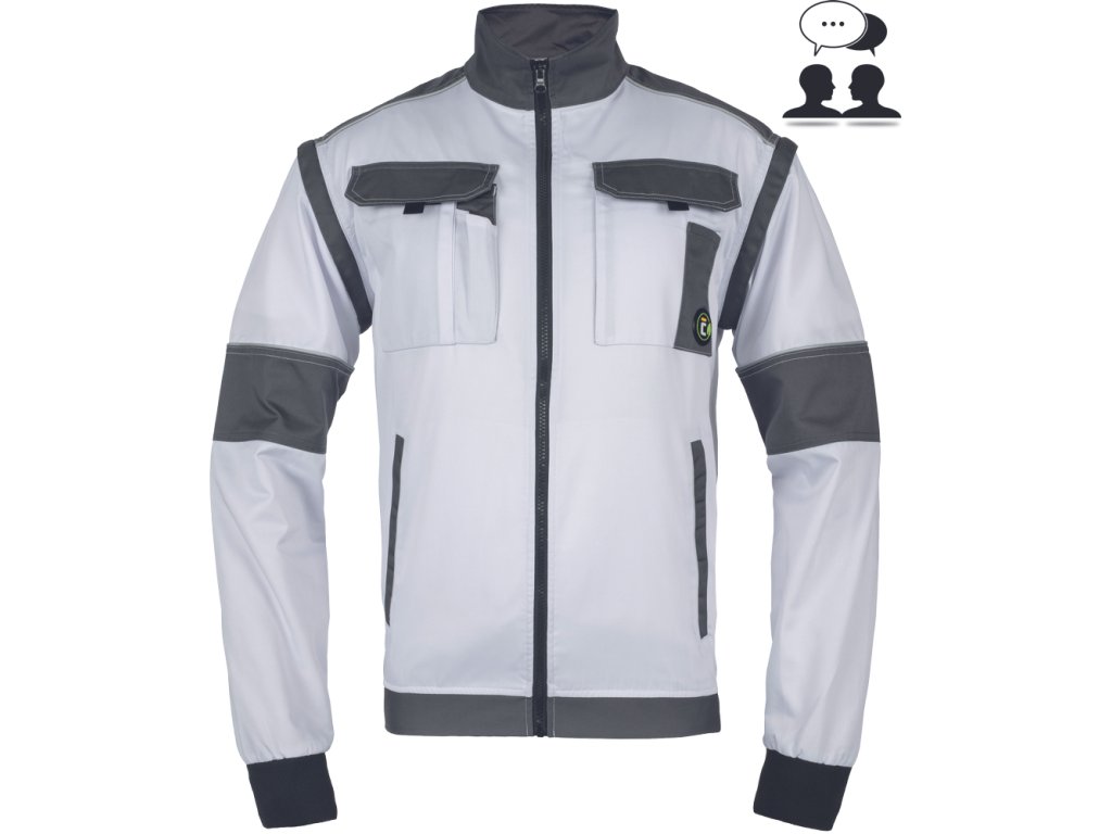 • pánská pracovní bunda se zapínáním na zip krytým légou • 2 boční kapsy • 2 náprsní kapsy s klopou na suchý zip • zesílení namáhaných částí ramen • odepínací rukávy s pružnými manžetami • pružný spodní obvod v pase • reflexní prvky
