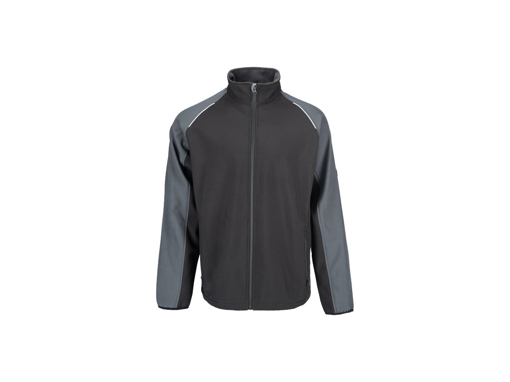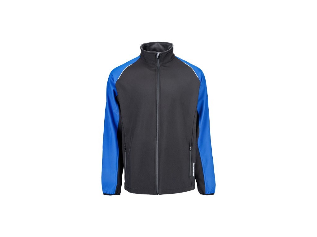 • pánská softshellová bunda bez kapuce se zapínáním na zip • 2 boční kapsy na zip • elastické lemy rukávů • reflexní lemování