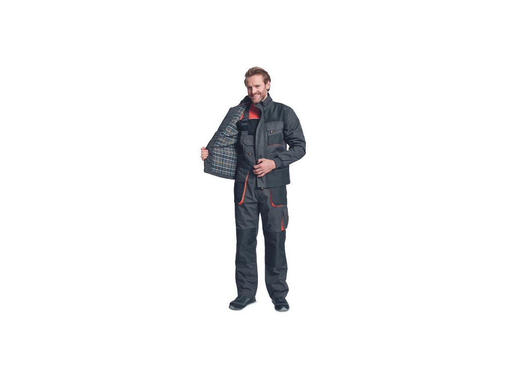 • zimní pracovní bunda moderního střihu se zapínáním na zip krytým légou • větru odolná • vntřní flanelová podšívka • polyester zesílení Oxford 600D v namáhaných místech a na loktech • 2 přední kapsy • 2 náprsní kapsy • odvětrání pod pažemi • elastické žebrové náplety na manžetách a spodním lemu bundy