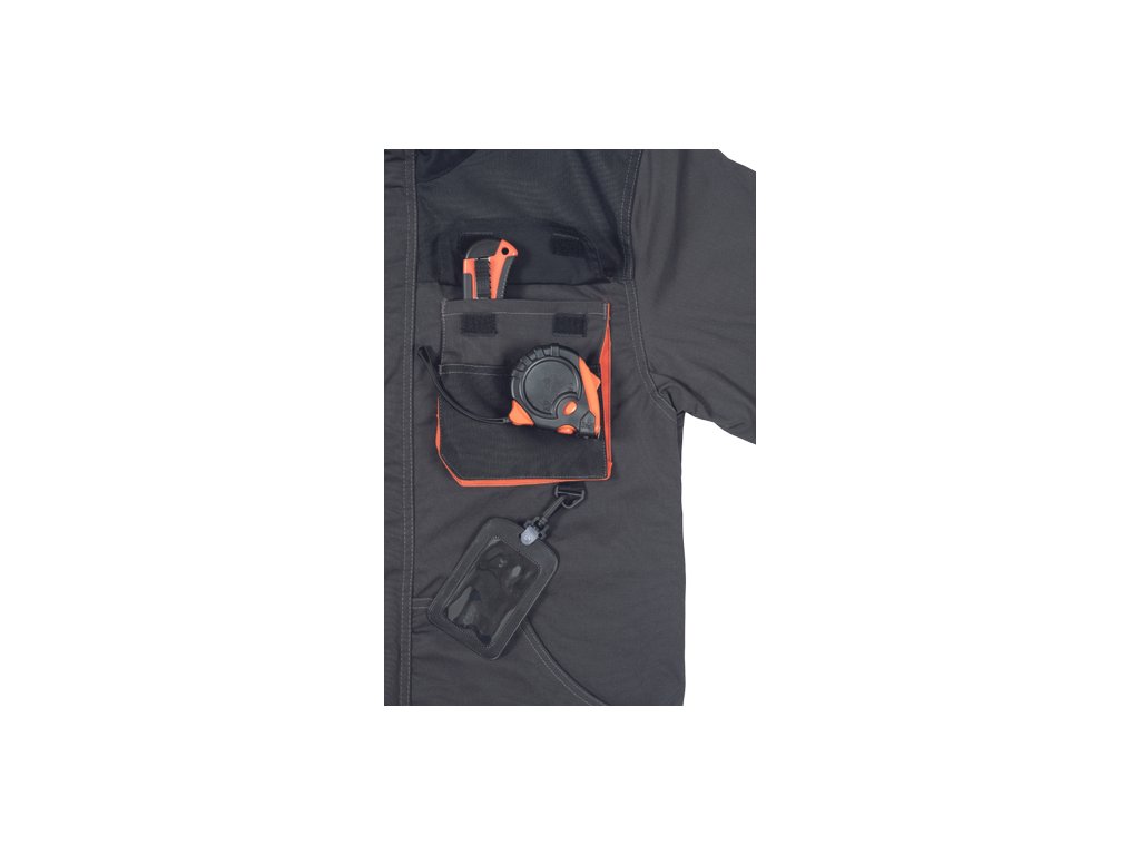 • pánská pracovní bunda • zapínání kryté légou na suchý zip • 2 přední kapsy • 2 náprsní kapsy • 1 náprsní kapsa na mobilní telefon • Oxford 600D zesílení loktů • reflexní prvky • kontrastní prošití