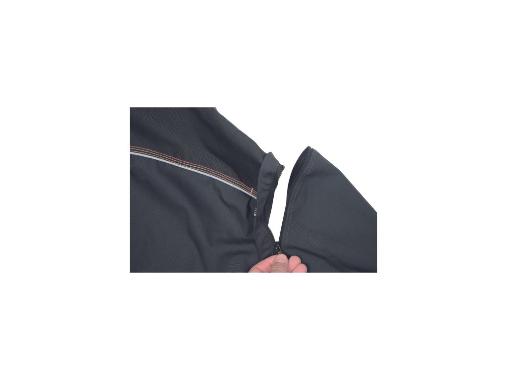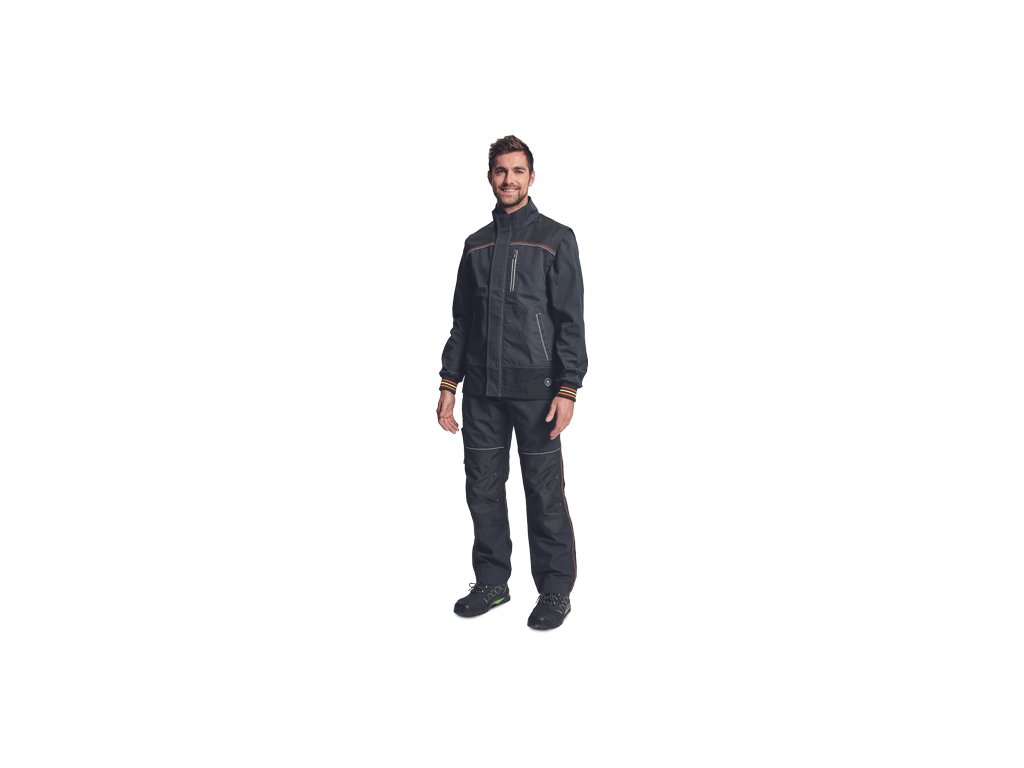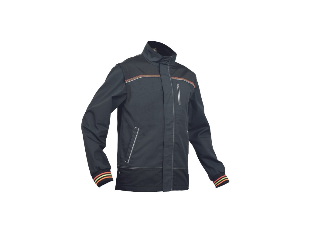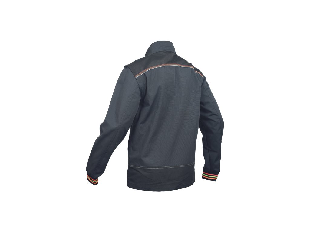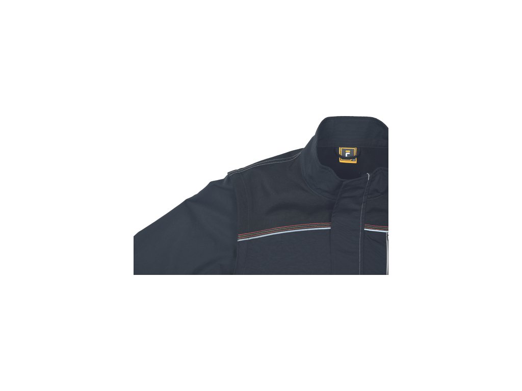 • kvalitní pánská pracovní bunda moderního střihu se stojáčkem • odepínatelné rukávy • 2 hluboké postranní kapsy • 1 náprsní kapsa • 600D Oxford zesílená oblast ramen • náplety na rukávech • prošití kontrastní nití v HI-VIS barevném odstínu • reflexní paspulky