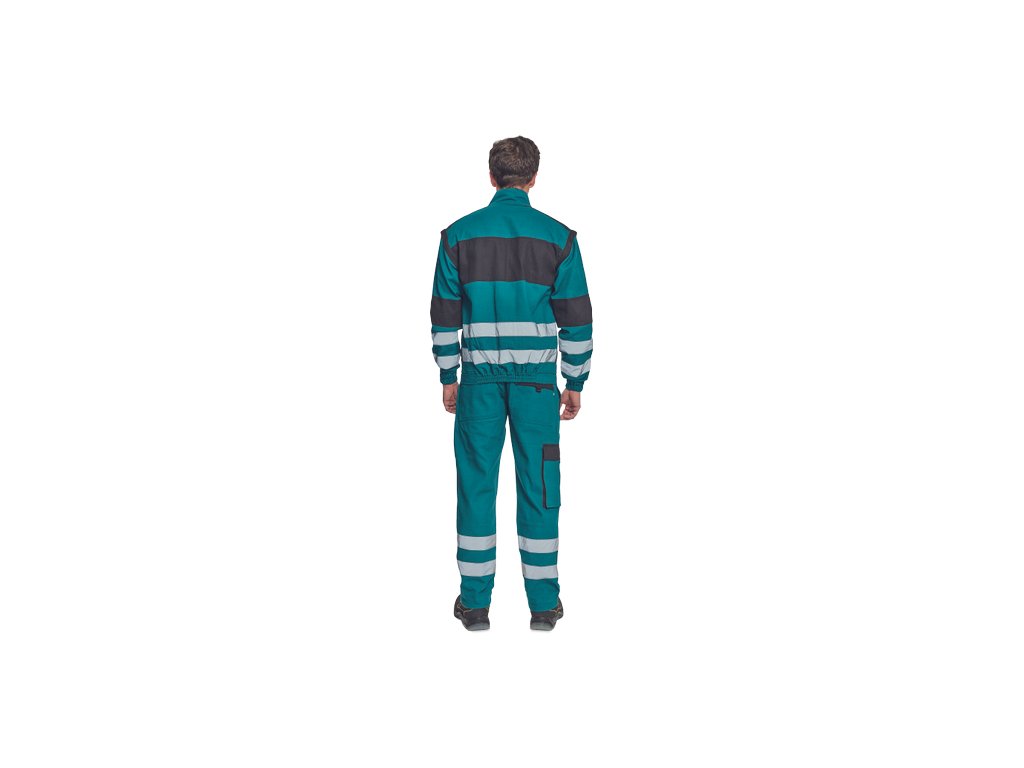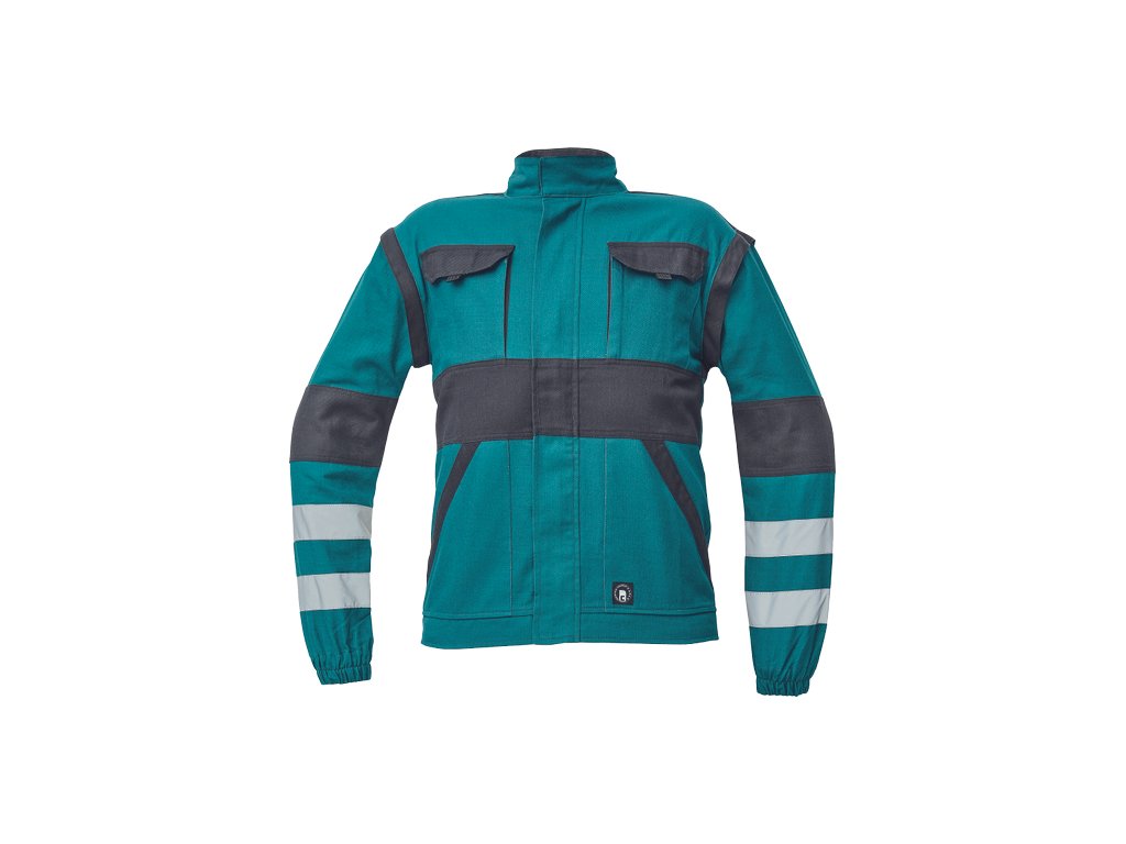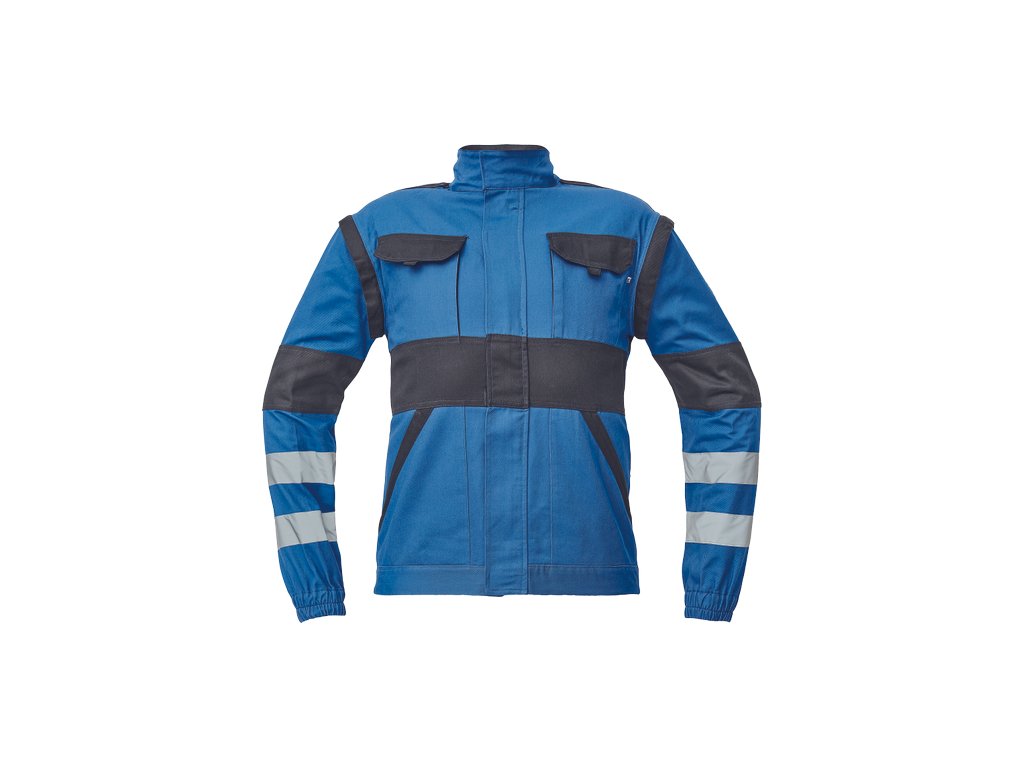 • pánská pracovní bunda se zapínáním na zip krytým légou • odepínatelné rukávy • 2 přední kapsy • 2 náprsní kapsy • zesílení namáhaných míst loktů a ramen • reflexní pruhy po odvodu rukávů a ve spodní části zad • pružné manžety rukávů a spodní obvod v pase