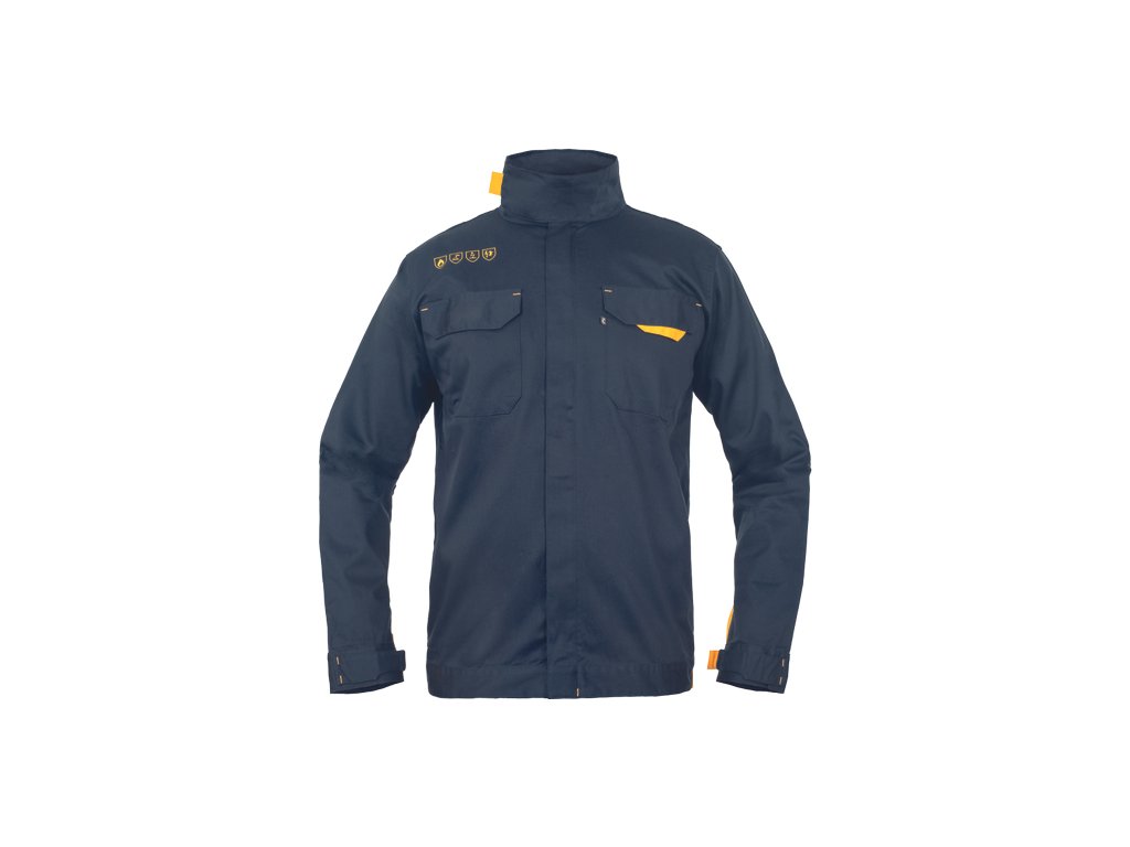 • multinormní bunda se zapínáním na zip krytým légou na suchý zip • 2 náprsní kapsy s klopou na suchý zip • nastavitelný obvod manžet rukávů o límce pomocí suchého zipu