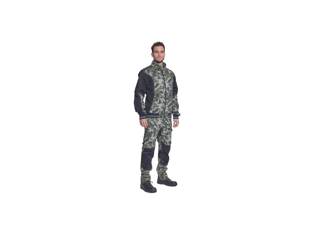 • pánská celopropínací pracovní bunda v kamuflážovém potisku • elastický inovativní materiál TRIFIBETEX® v kombinaci se 4way strečovým materiálem TRIFIBETEXPRO® • trojité prošívání • CORDURA® zesílení v oblasti ramen • 2 boční kapsy • 2 náprsní kapsy na zip • elastické náplety rukávů a spodního lemu bundy s dekorativními pruhy • reflexní prvky v barevném odstínu
