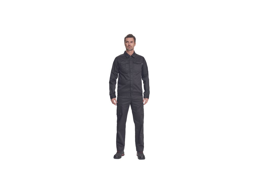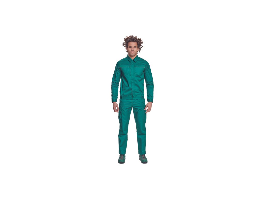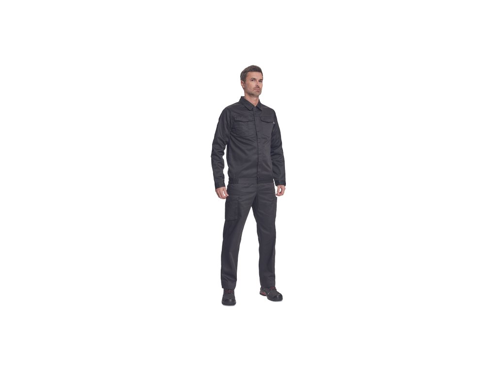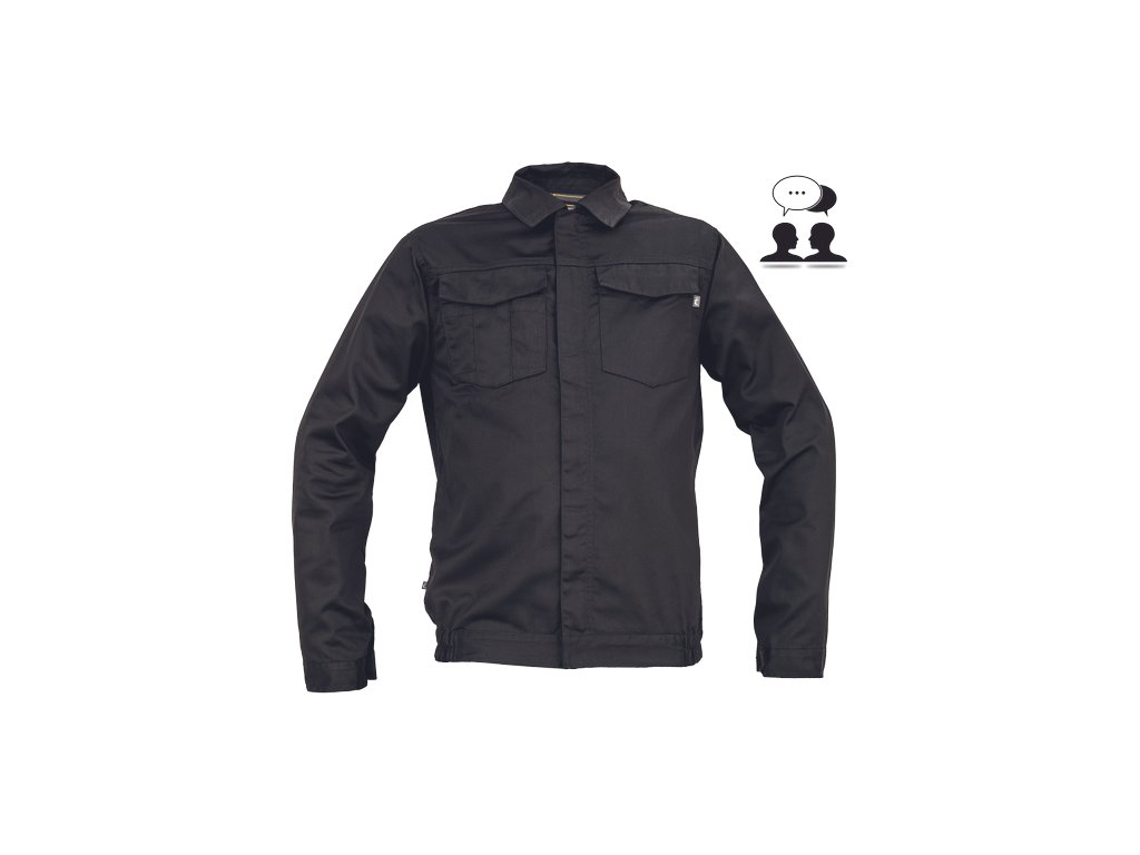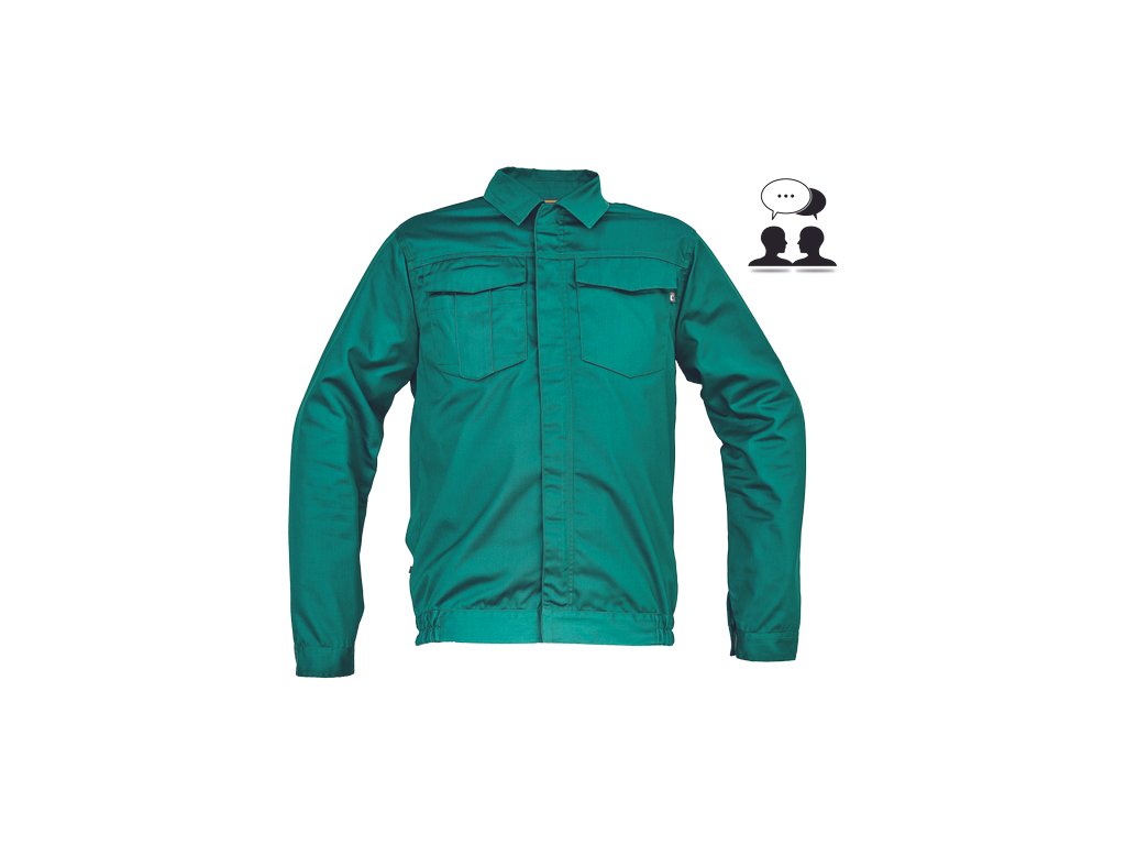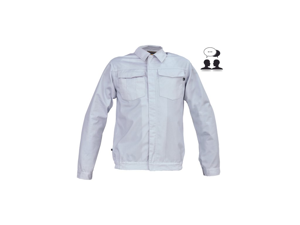 • pánská lehká pracovní bunda • zapínání na zip kryté légou na suchý zip • 2 náprsní kapsy s klopou • elastický lem v bocích • nastavitelná šířka rukávů pomocí suchého zipu