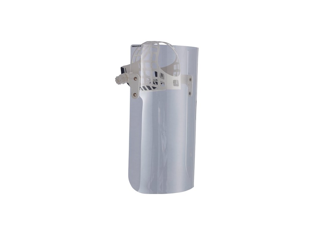 ochranný štít o velikosti 330 x 290 mm z čirého PMMA tl. 2 mm je typem štítu s náhlavním nosičem