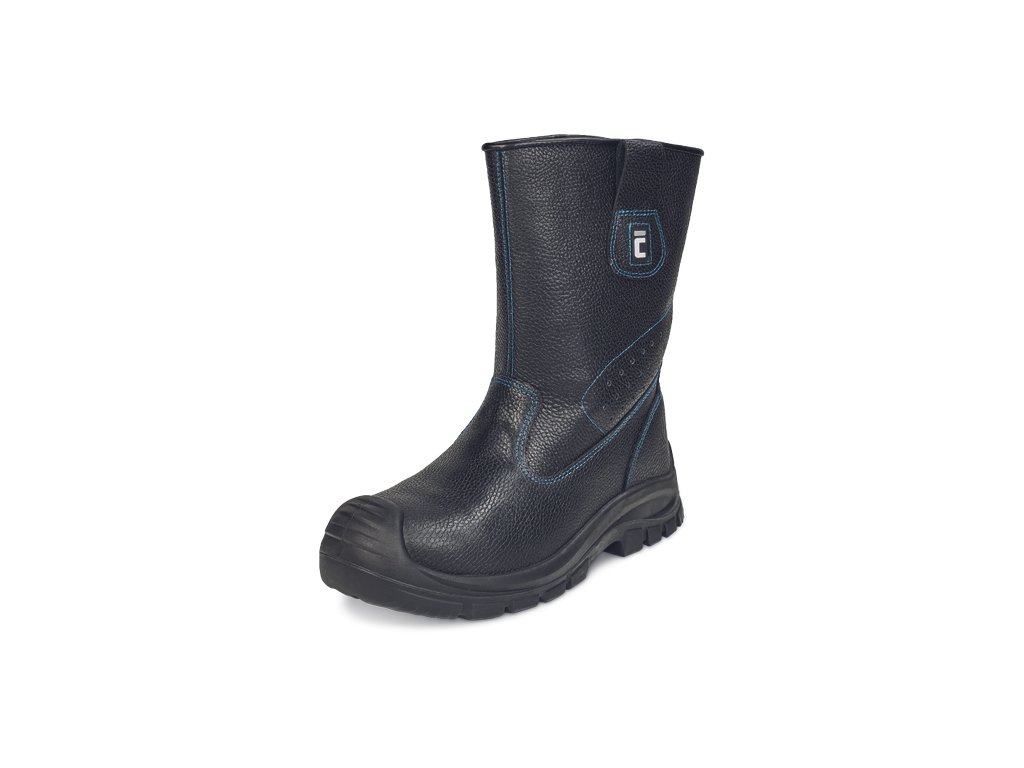 Bezpečnostní holeňová nazouvací obuv s kovovou tužinkou a stélkou odolnou proti propíchnutí. Podešev z dvouhustotního PU s masivní ochranou vůči okopu. Svršek z voděodolné kůže.