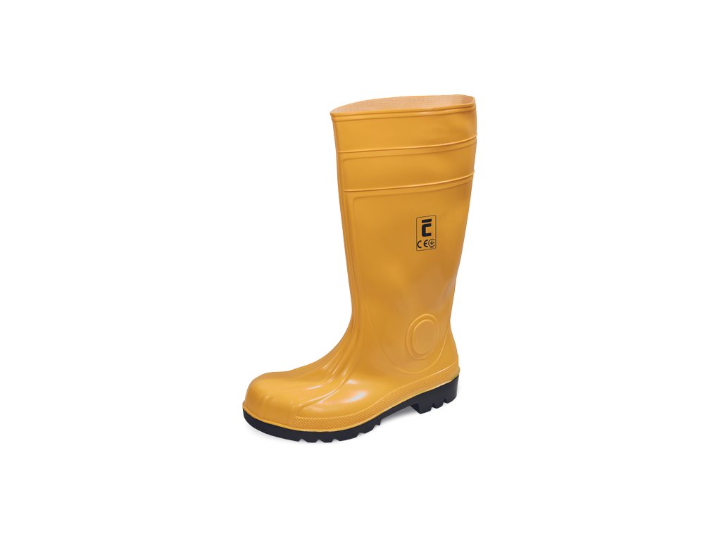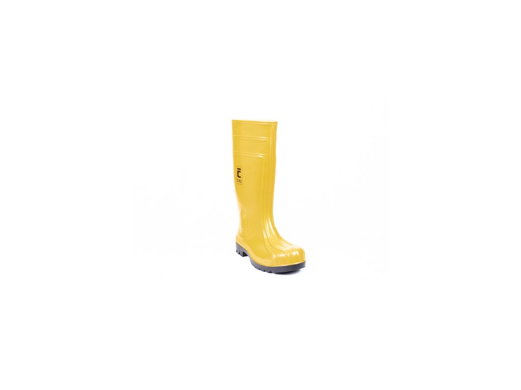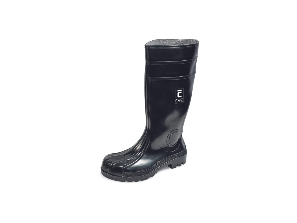 Antistatické vysoké bezpečnostní holínky z PVC a nitrilu s kovovou tužinkou a antikorozní stélkou. Určené k ochraně před vodou, nečistotami, stlačením a propíchnutím. Antistatická podešev, rezistentní vůči kyselinám, olejům, pohonným látkám a tukům. Výška cca 38 cm, váha cca 2,5 kg.