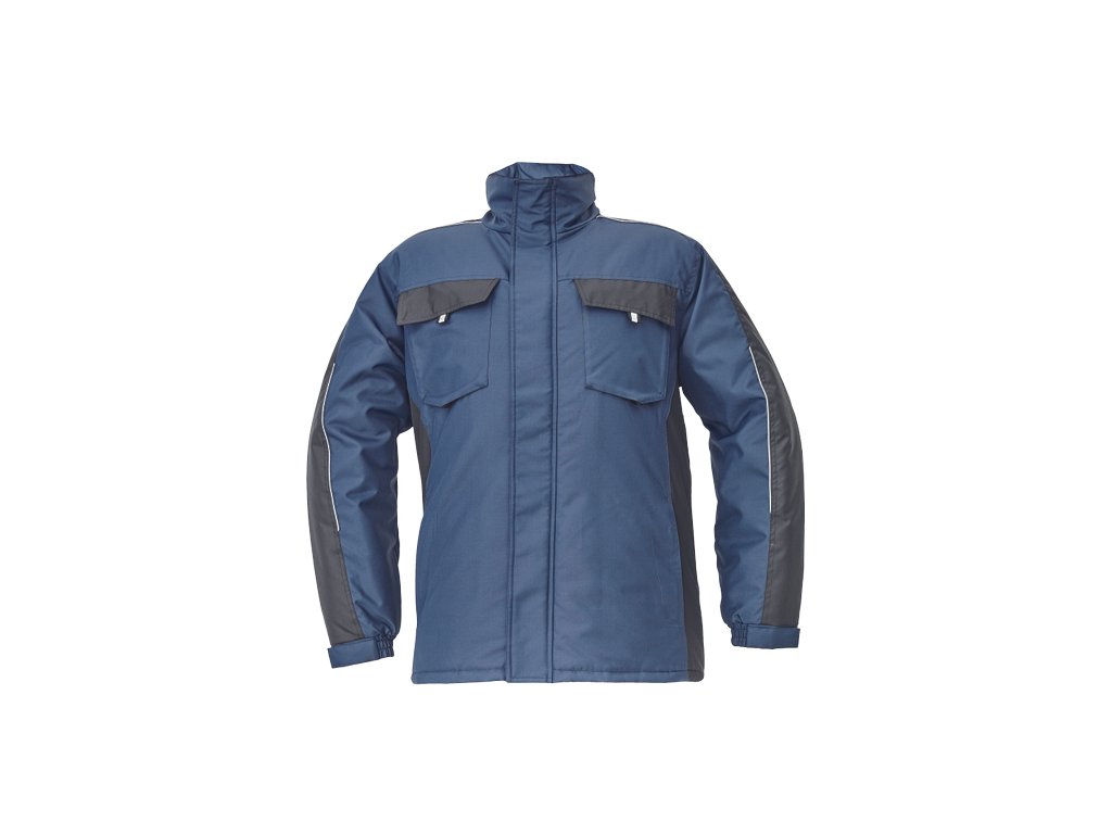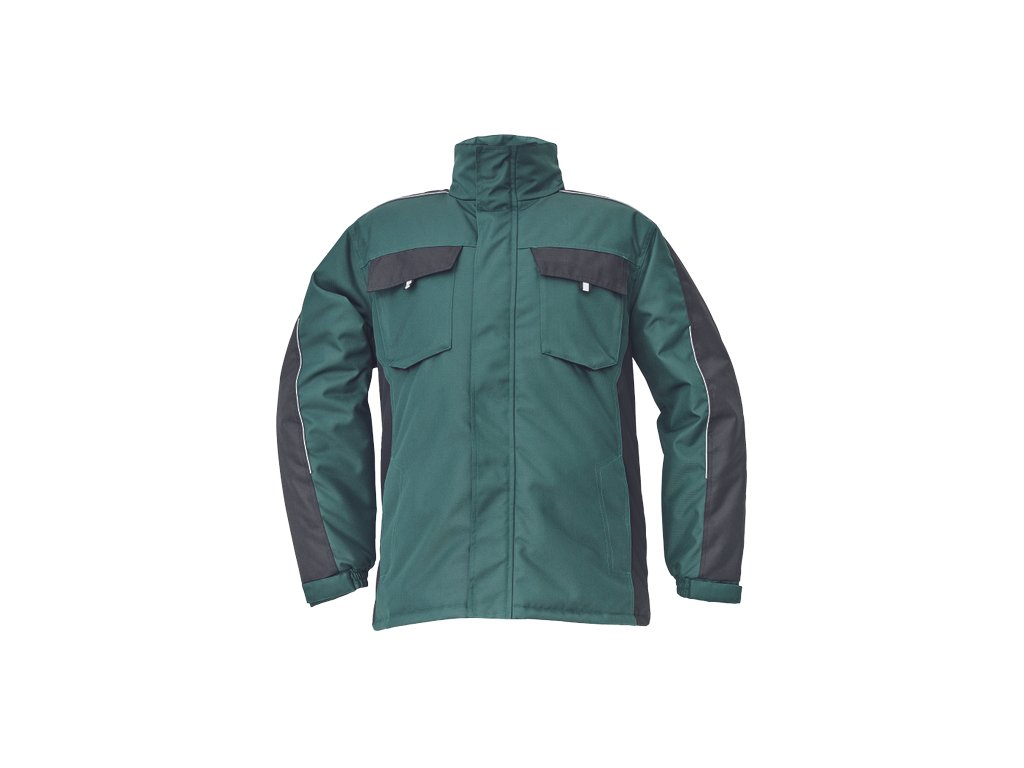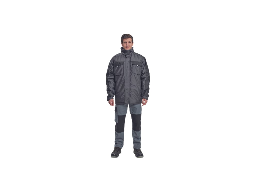 • pánská zimní bunda • zapínání na zip kryté légou na suchý zip • kapuce složená v límci • 2 boční kapsy, 2 náprsní kapsy na suchý zip • 1 vnitřní kapsa na mobilní telefon • elastické manžety rukávů se suchým zipem • reflexní prvky