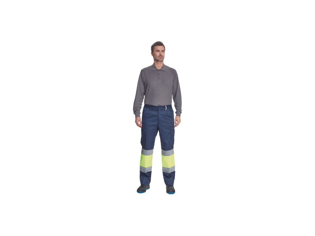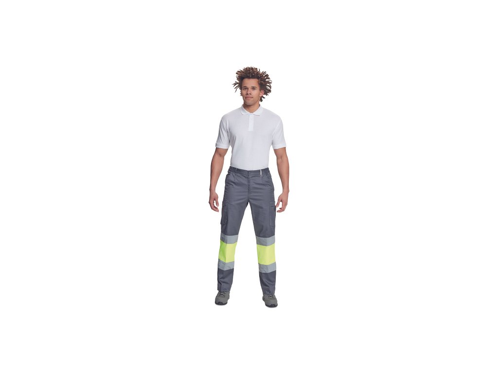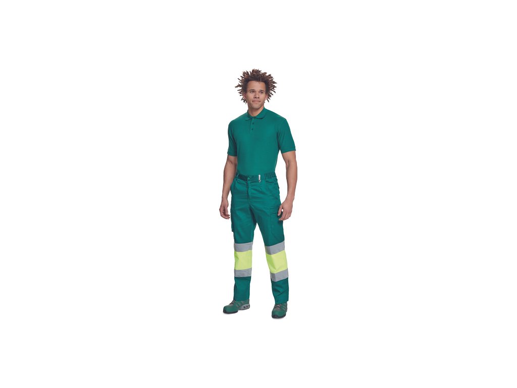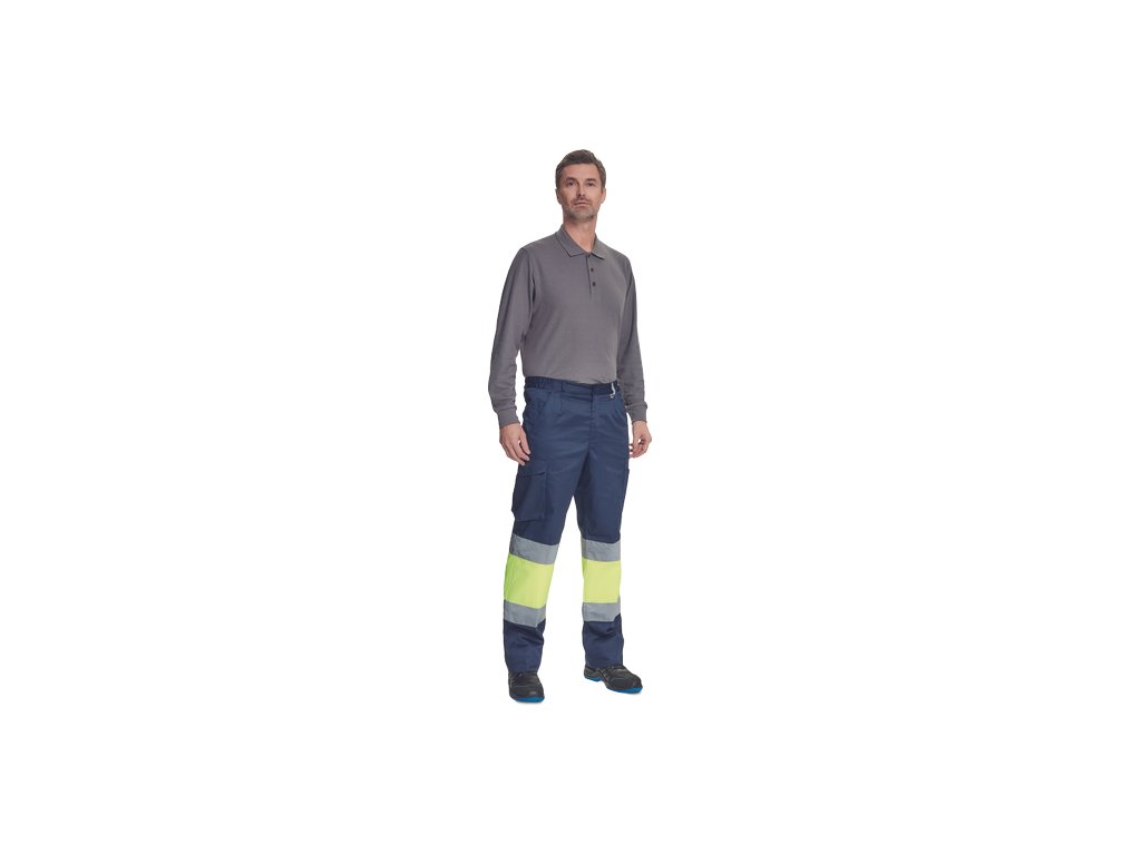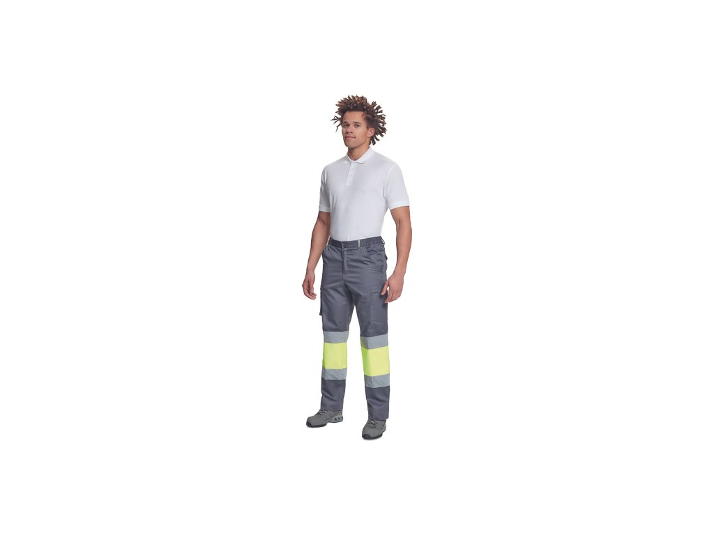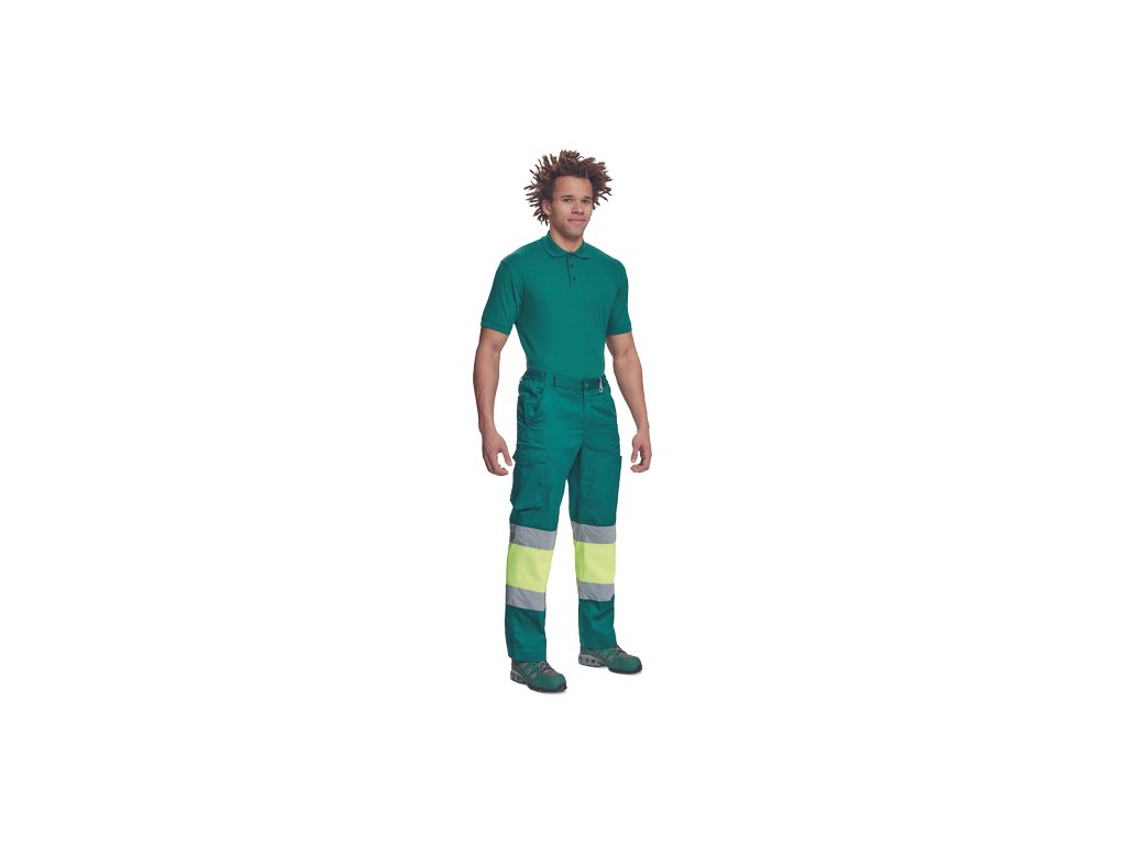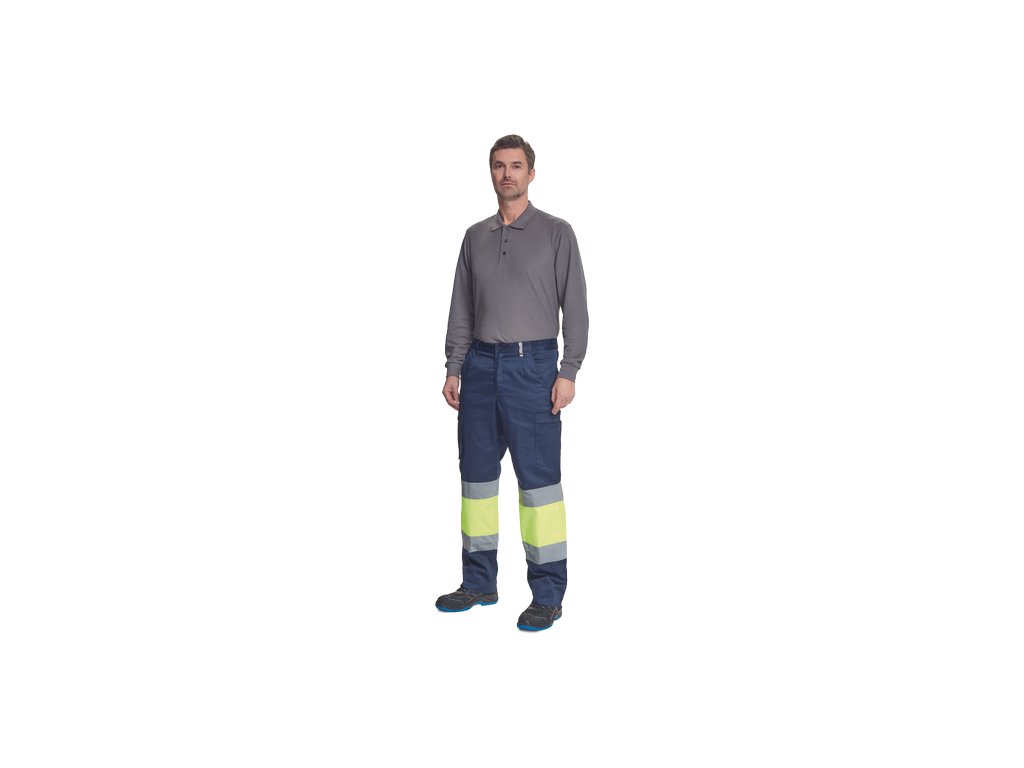 • pánské lehké pracovní kalhoty v kombinaci s HI-VIS holenní částí s reflexními pruhy • elastický pas • 2 postranní kapsy • 1 kapsička na mince • 2 stehenní kapsy • 2 zadní kapsy • nastavitelná délka nohavic