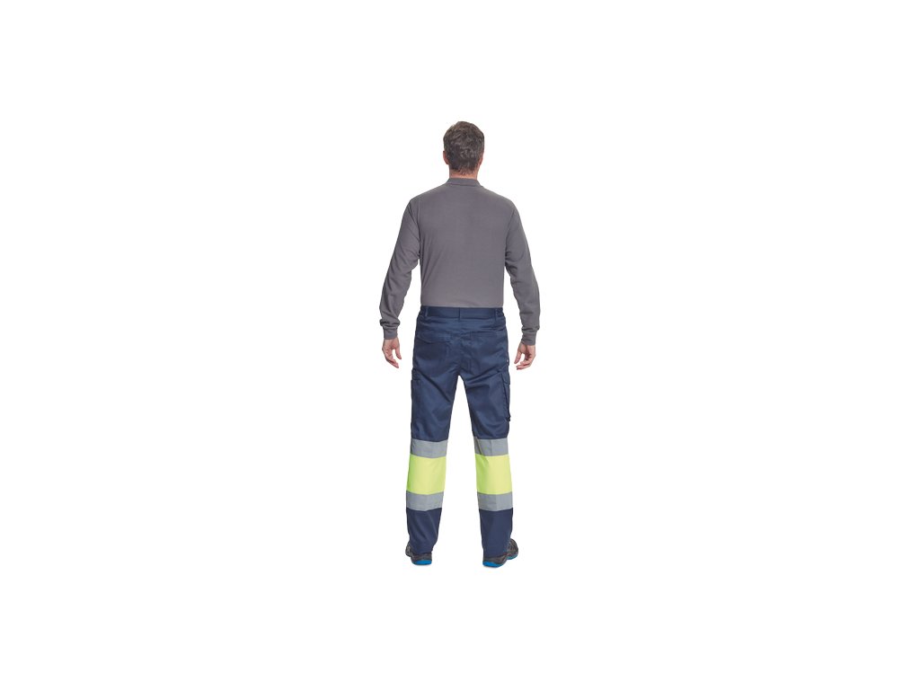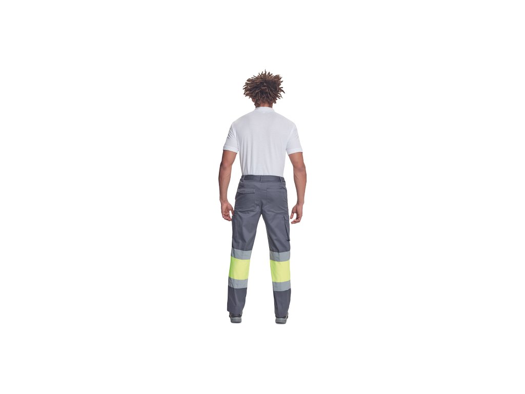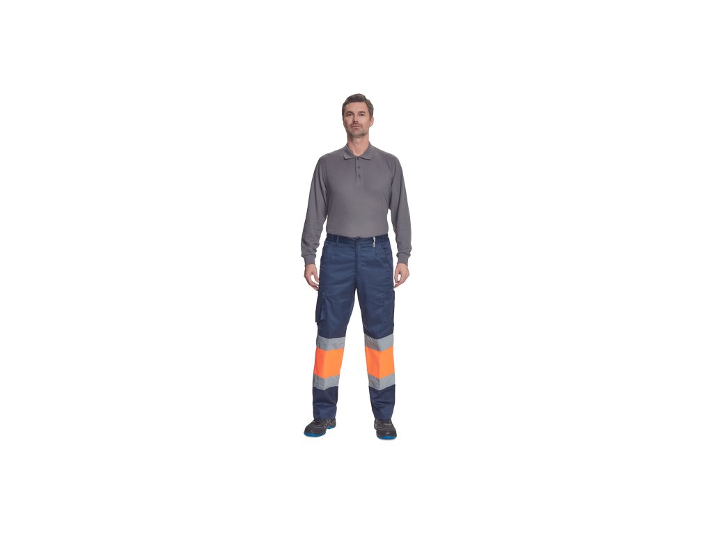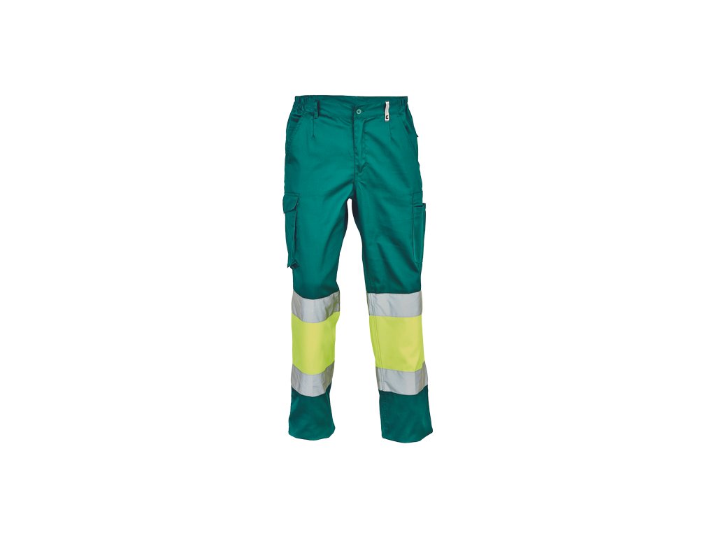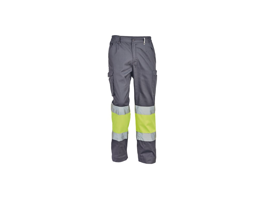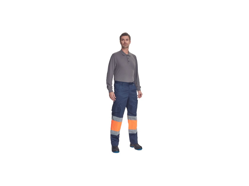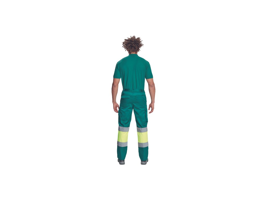 • pánské lehké pracovní kalhoty v kombinaci s HI-VIS holenní částí s reflexními pruhy • elastický pas • 2 postranní kapsy • 1 kapsička na mince • 2 stehenní kapsy • 2 zadní kapsy • nastavitelná délka nohavic