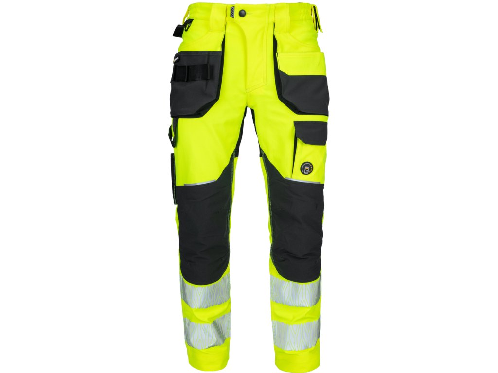 • HV polyesterová 4way strečová tkanina • segmentované reflexní design pruhy • multifunkční boční kapsy • zesílený rozkrok • zesílení v oblasti kolen s možností vkládání kolenních chráničů • nastavitelná délka nohavic