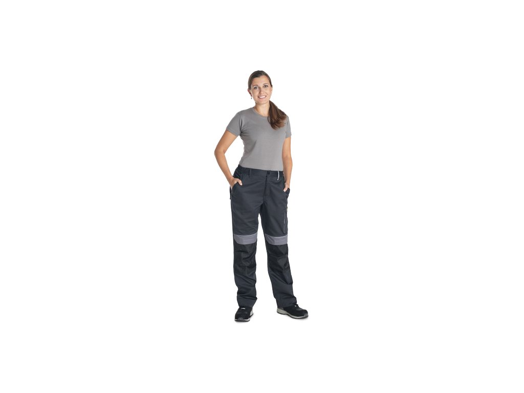 • dámské pracovní kalhoty s elastickým pasem • 2 přední kapsy • 1 levá stehenní kapsa • 2 zadní kapsy se zapínáním na suchý zip • zesílená oblast kolen s možností vložení chráničů kolen • reflexní prvky • nastavitelná délka nohavic