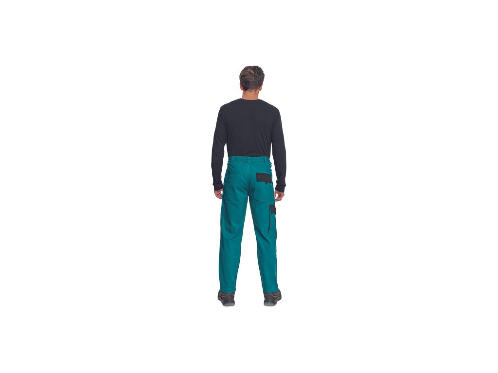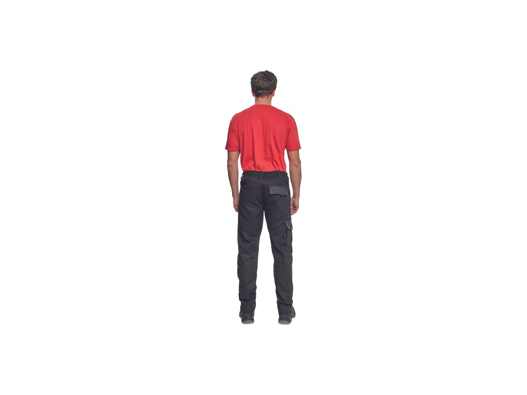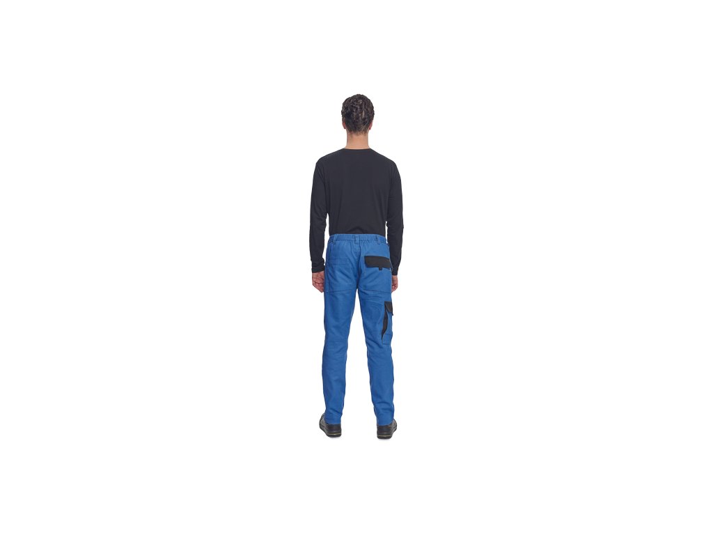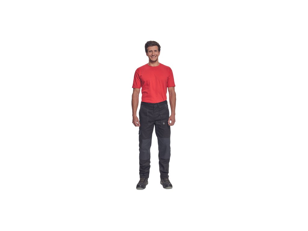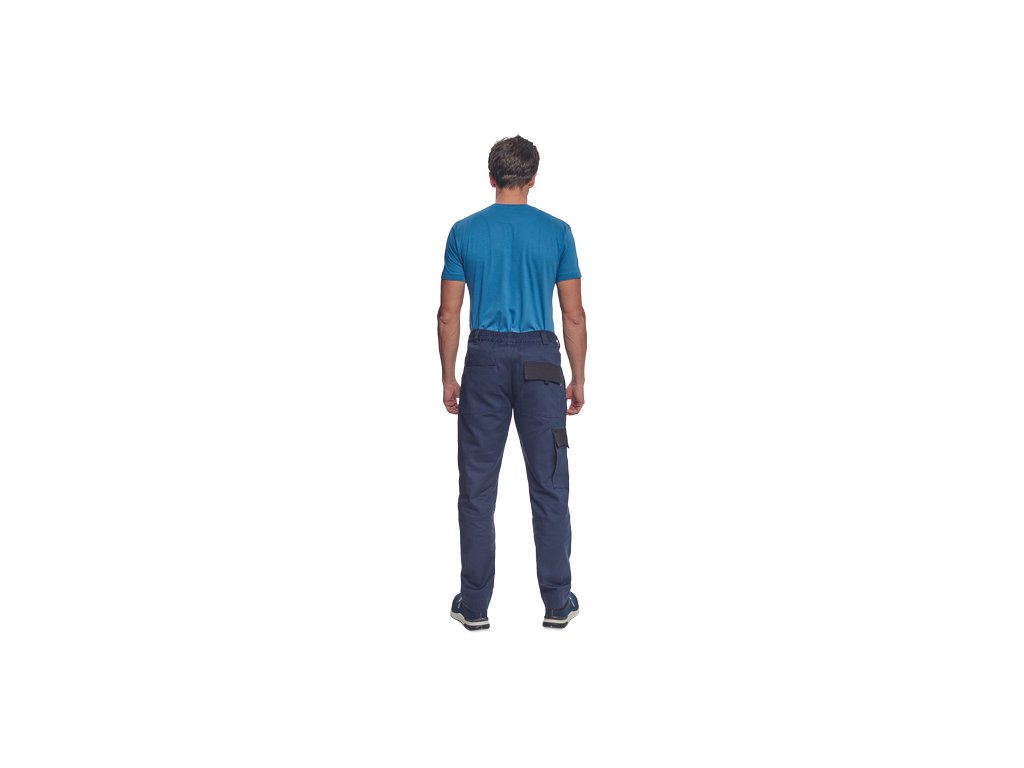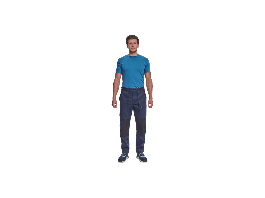 • pánské pracovní kalhoty s elastickým pasem • 2 přední kapsy • 1 stehenní kapsa • 2 zadní kapsy • zesílená oblast kolen • nastavitelná délka nohavic