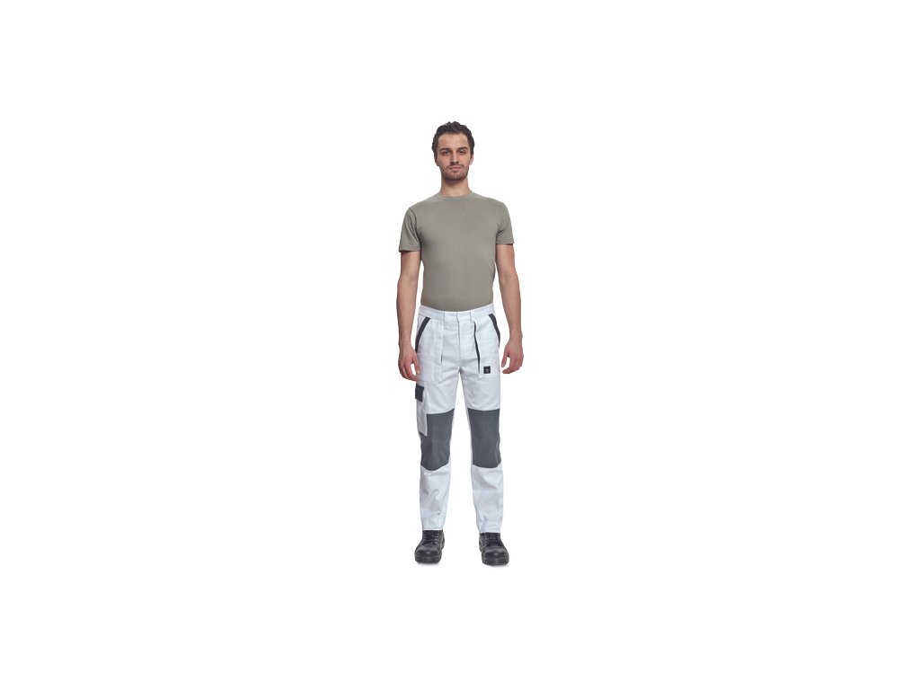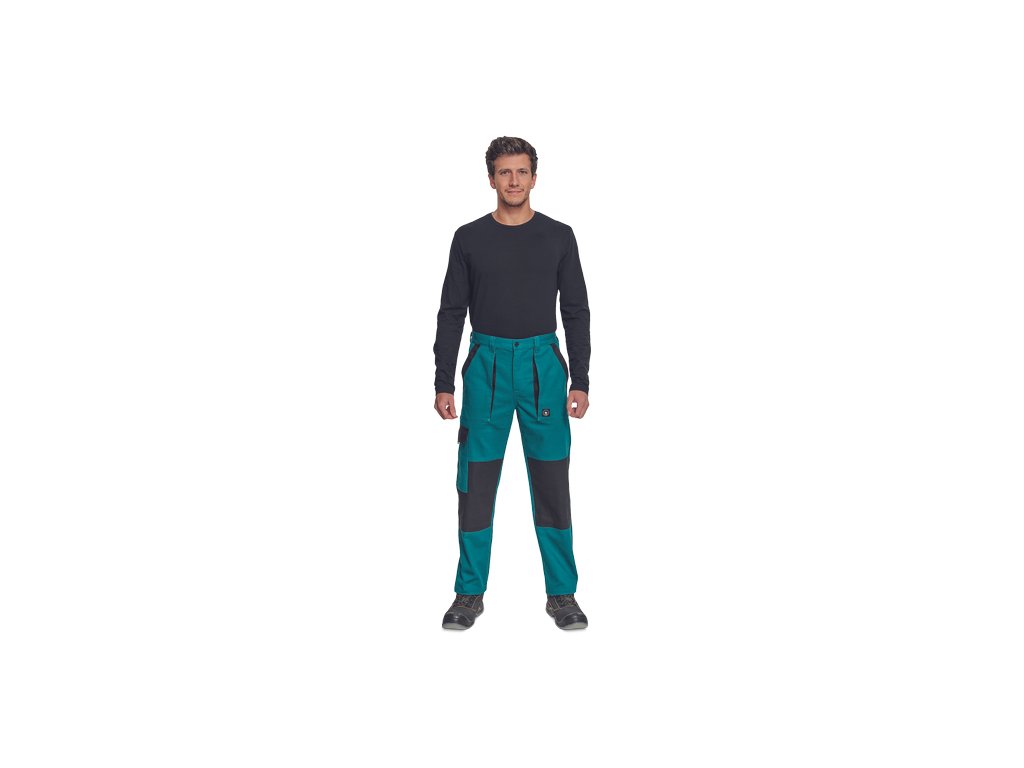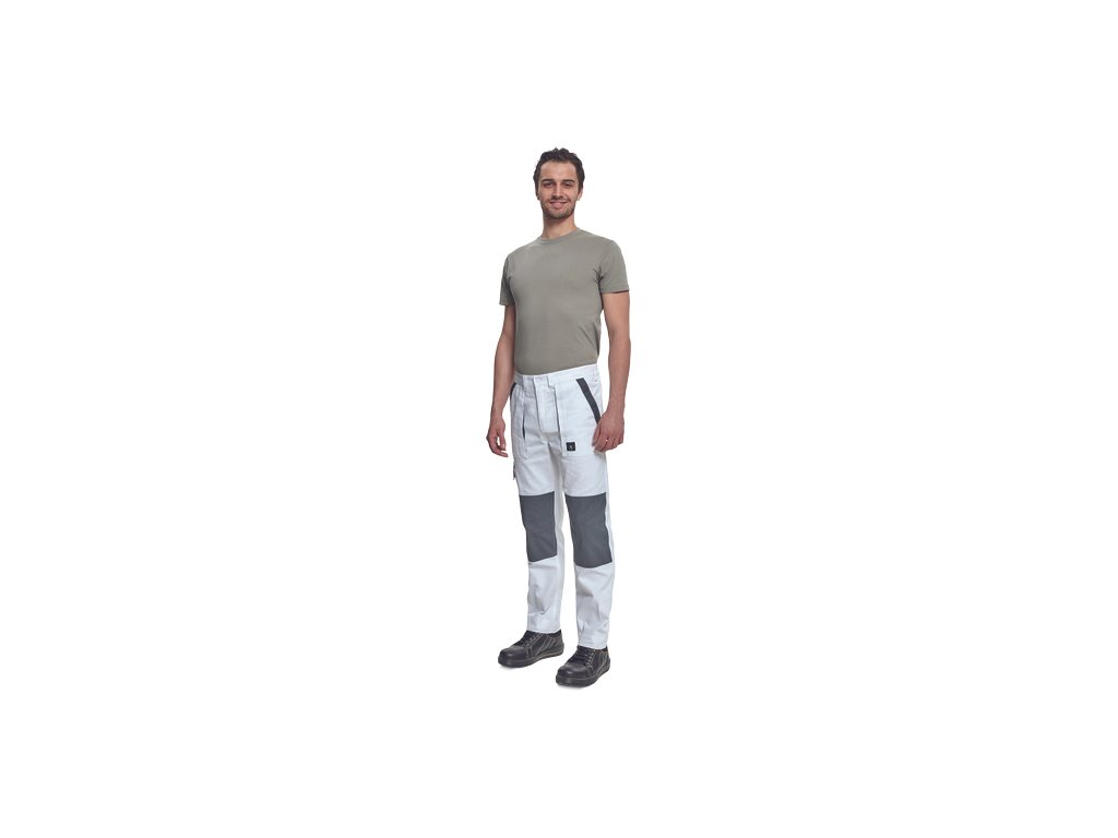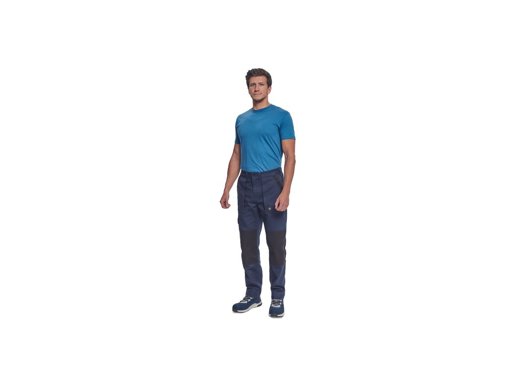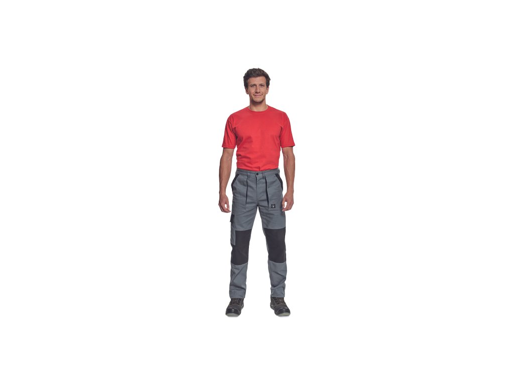 • pánské pracovní kalhoty s elastickým pasem • 2 přední kapsy • 1 stehenní kapsa • 2 zadní kapsy • zesílená oblast kolen • nastavitelná délka nohavic