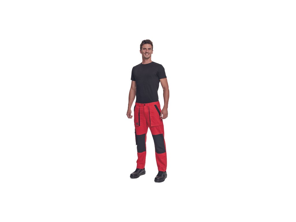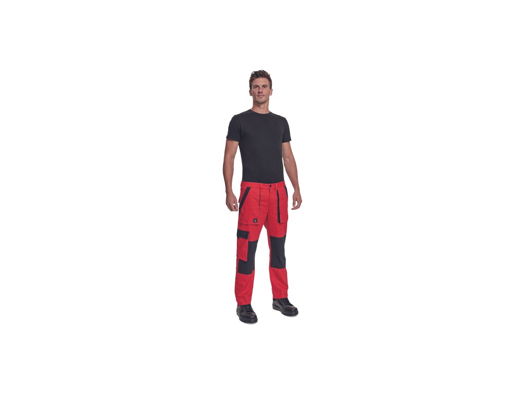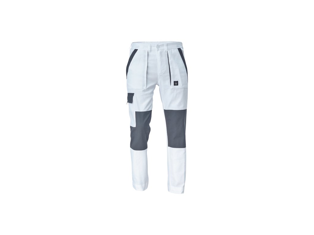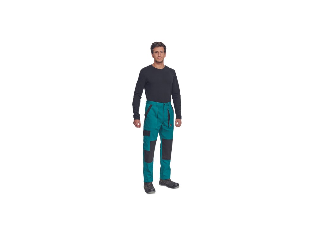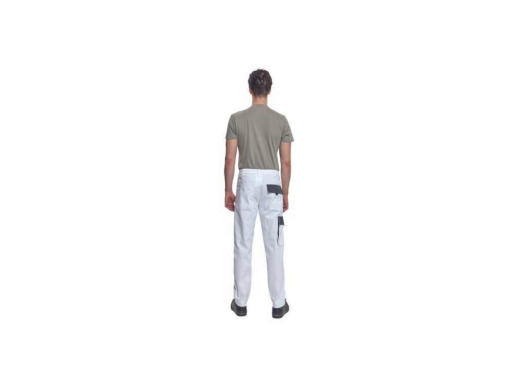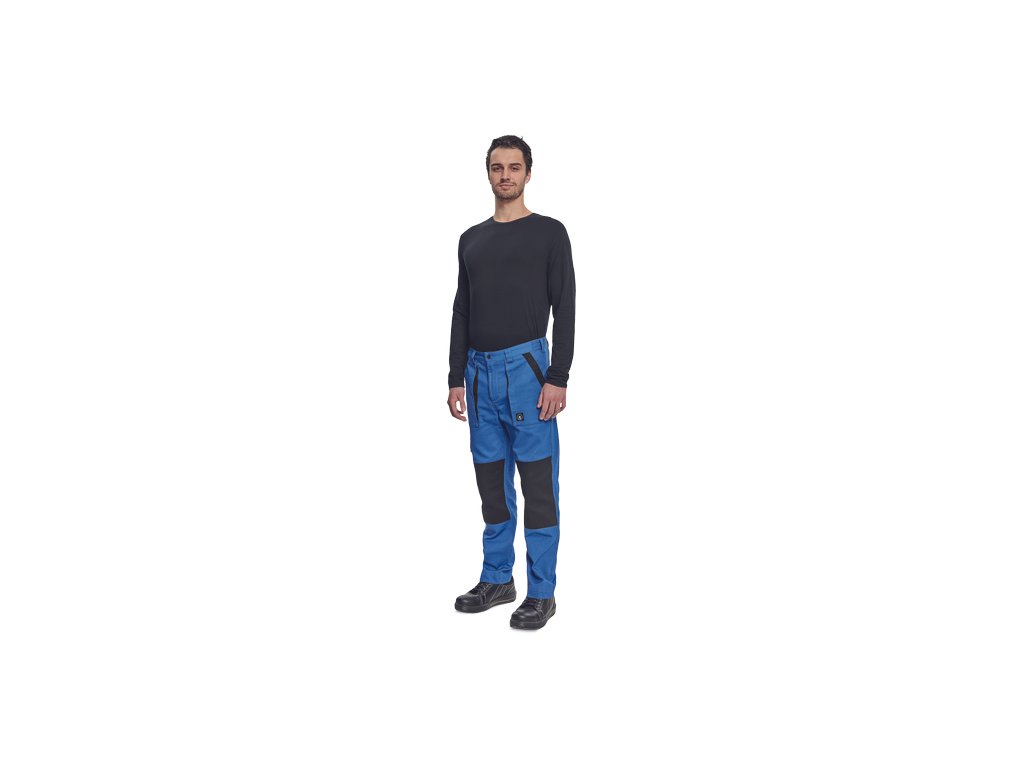 • pánské pracovní kalhoty s elastickým pasem • 2 přední kapsy • 1 stehenní kapsa • 2 zadní kapsy • zesílená oblast kolen • nastavitelná délka nohavic