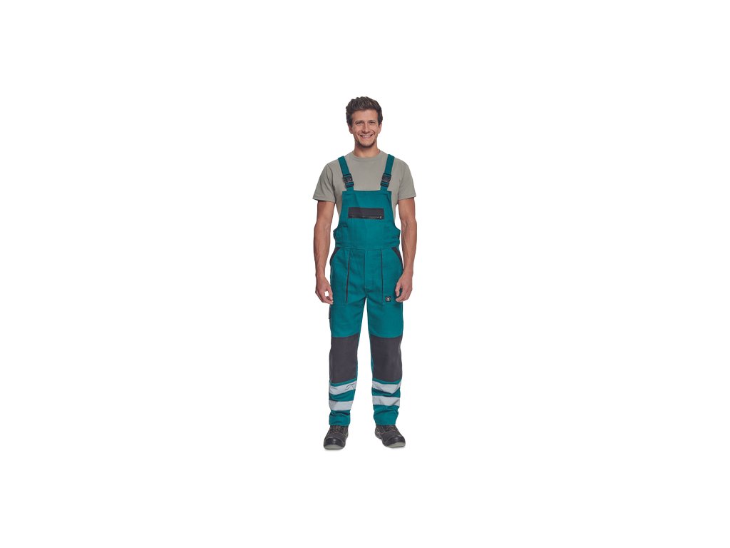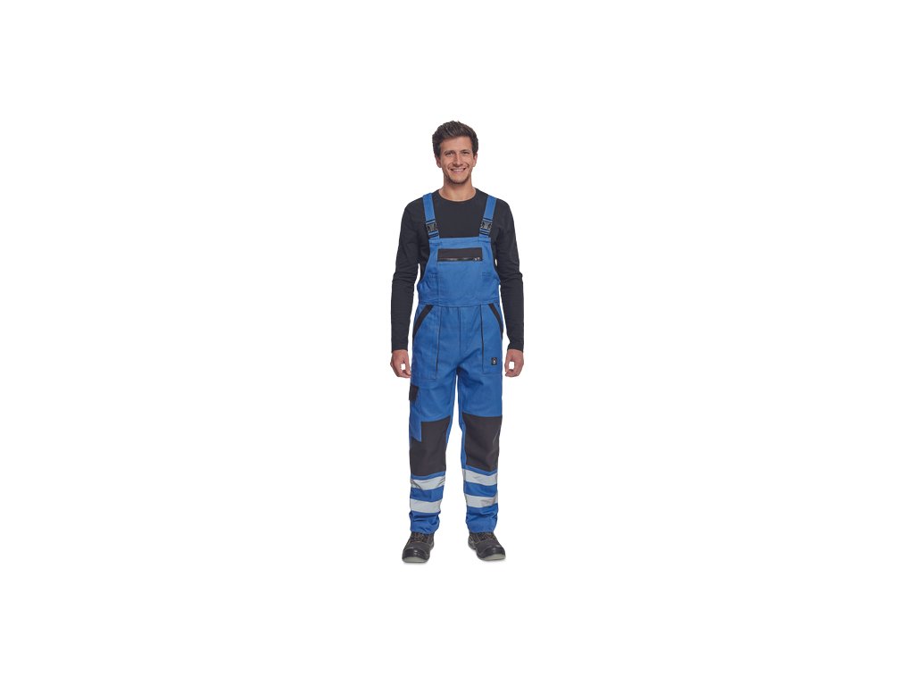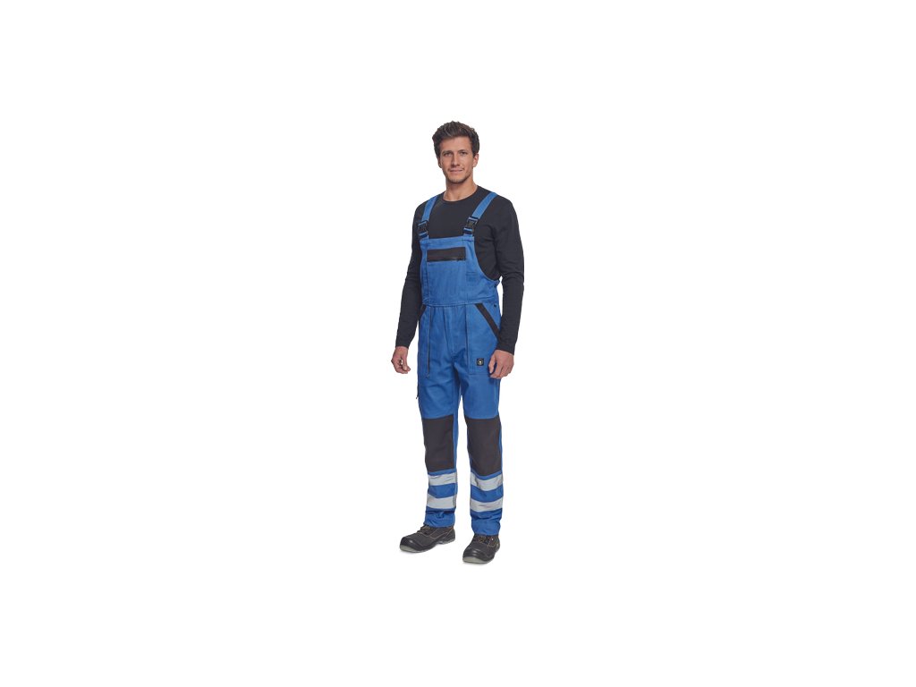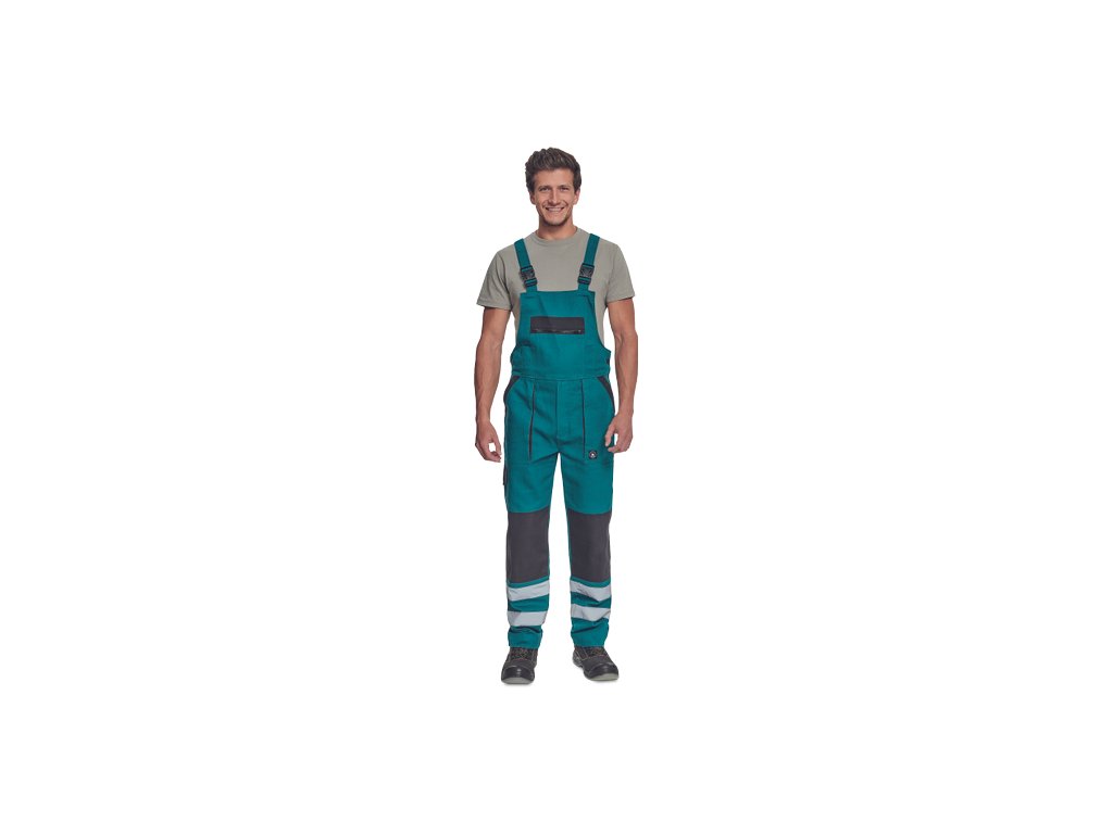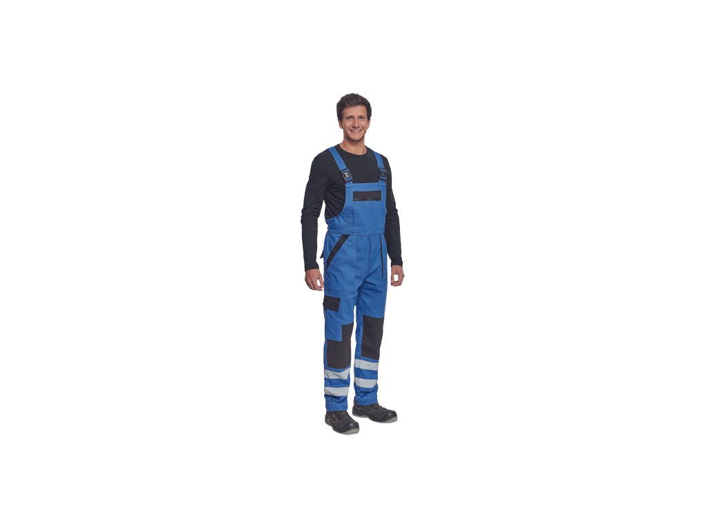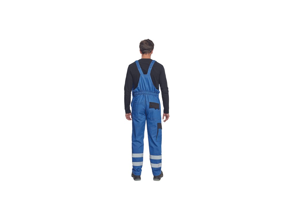 • pánské pracovní kalhoty s laclem a elastickým pasem • široké šle s plastovými sponami • 2 přední kapsy, 1 stehenní kapsa • 1 velká náprsní kapsa, 2 zadní kapsy • reflexní pruhy na spodní části nohavic • zesílená oblast kolen • nastavitelná délka nohavic