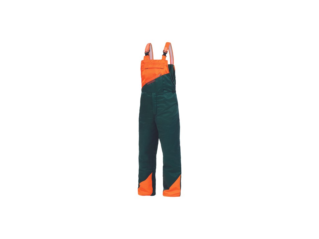 • pánské protipořezové kalhoty s laclem pro práci v lese • vnitřní protipořezová vložka ve předu od pasu až po konec nohavic • nastavitelná délka • zapínání na plastovou sponu • náprsní kapsa na zip • zapínání z boku na zip a knoflíky • zadní našitá kapsa s klopou na suchý zip • kapsa na skládací metr • povrchová úprava proti klíšťatům • certifikace na ochranu proti pořezu motorovou pilou Class 1 - rychlost řetězu 20 m/s.