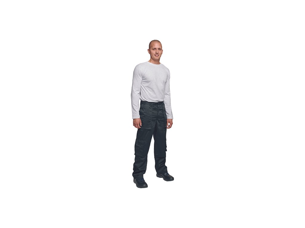• pánské pevné praktické kalhoty s mnoha funkčními kapsami • v pase na gumu a s poutky na pásek