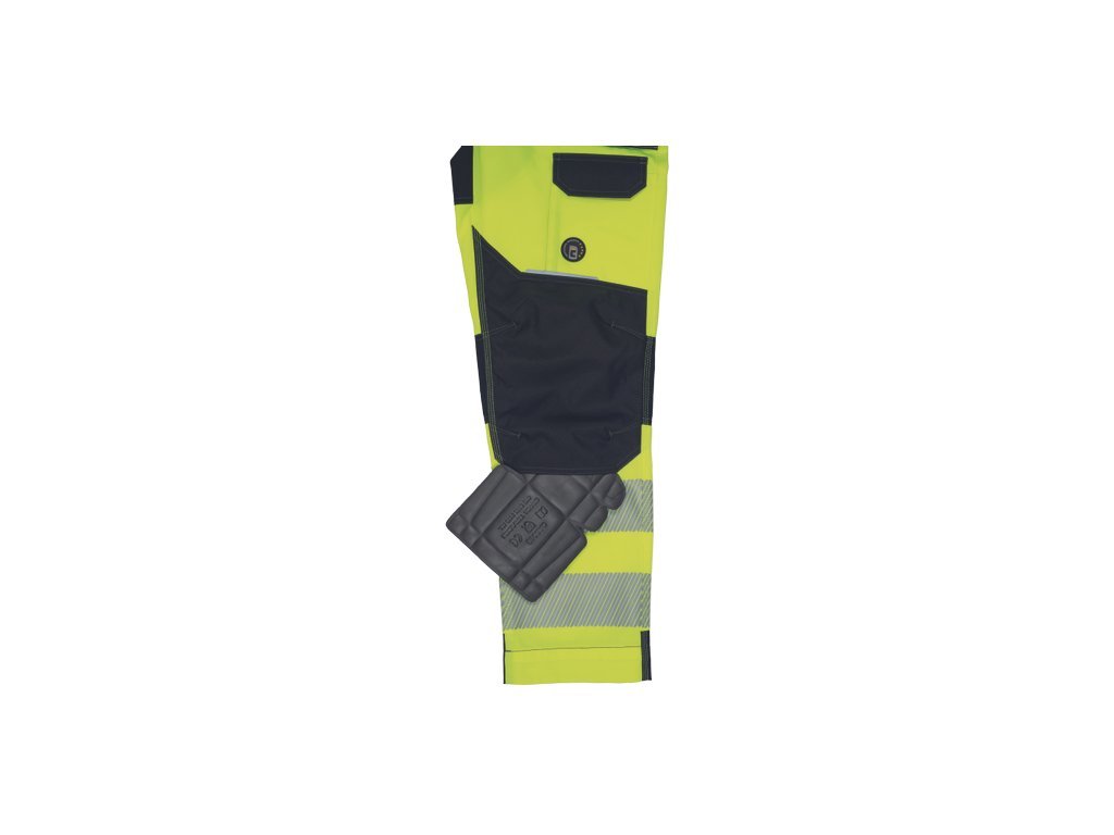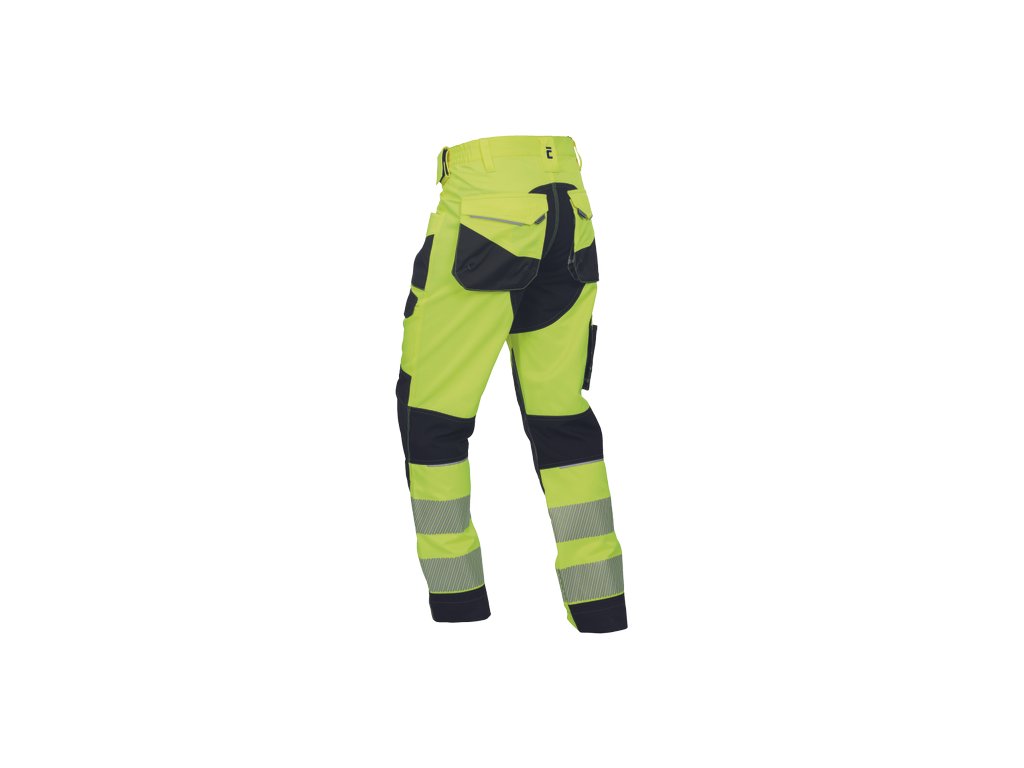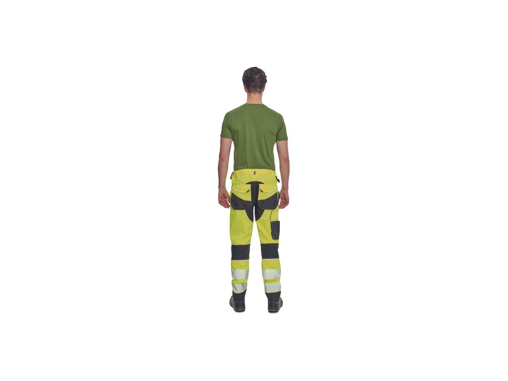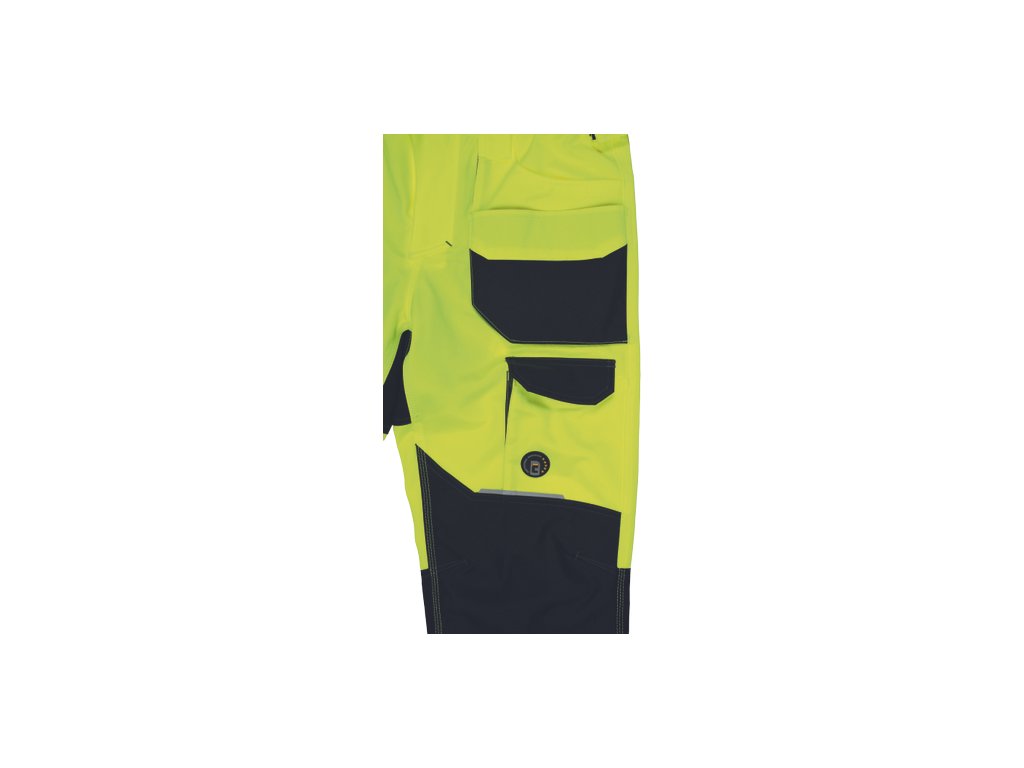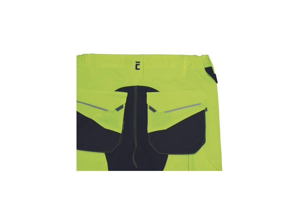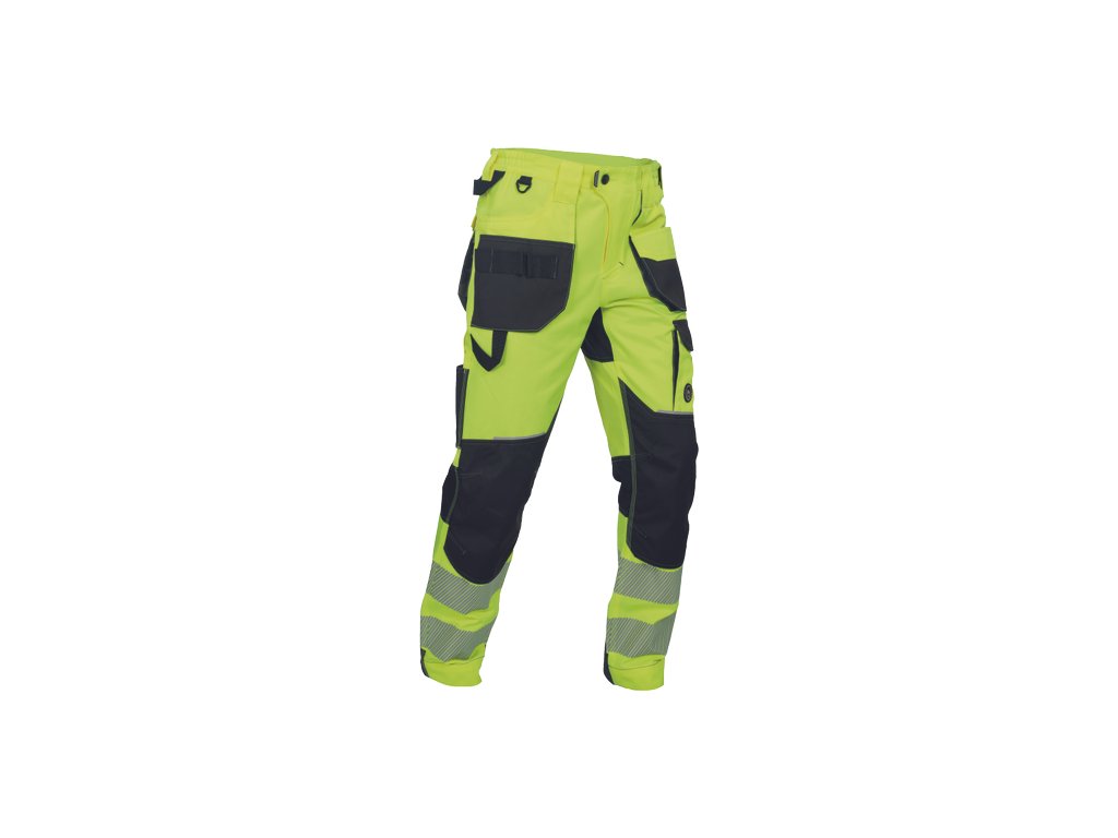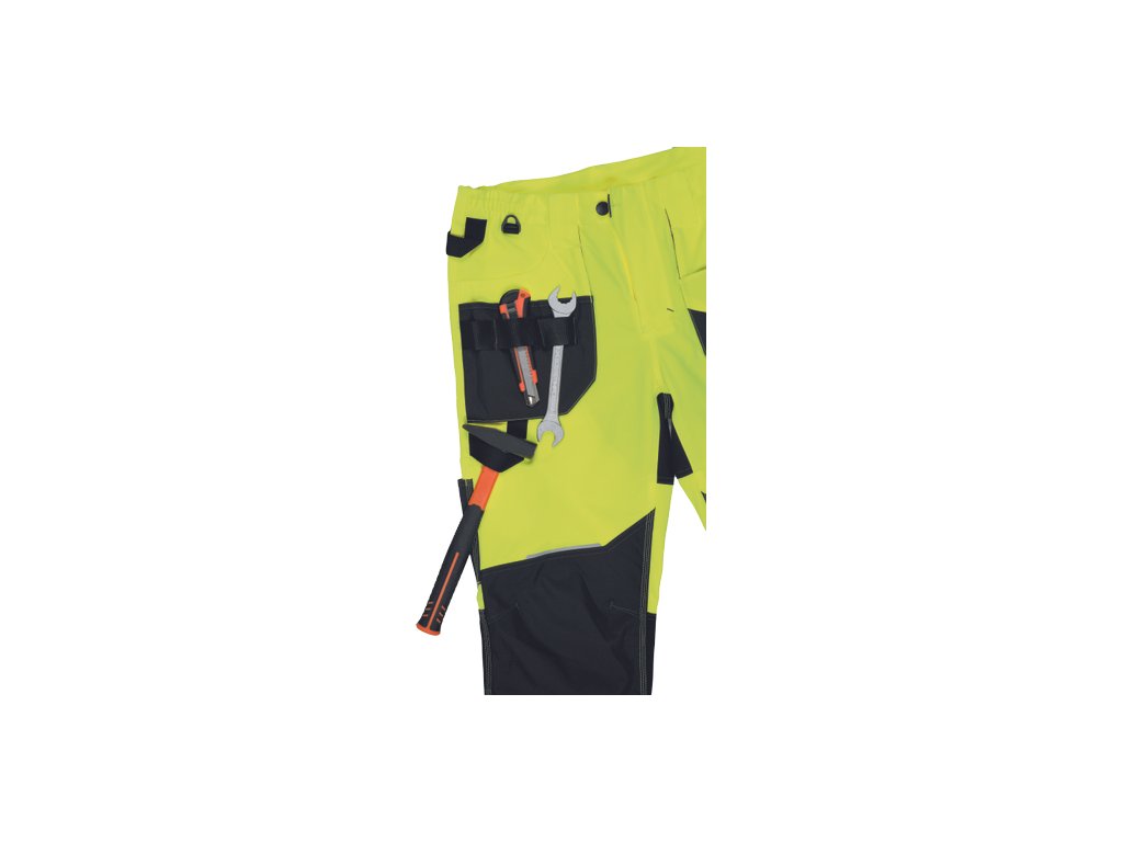 • pánské pracovní HI-VIS kalhoty s pružným pasem a multifunkčními kapsami • Oxford 600D zesílení kolenních kapes pro vkládání ochranných nákoleníků • odolné trojité prošití nohavic a sedu • 2 tištěné reflexní segmentované 7 cm pruhy na spodní části nohavic • nastavitelná délka nohavic
