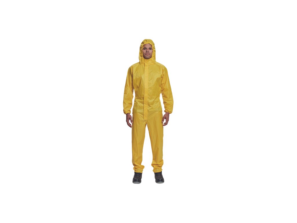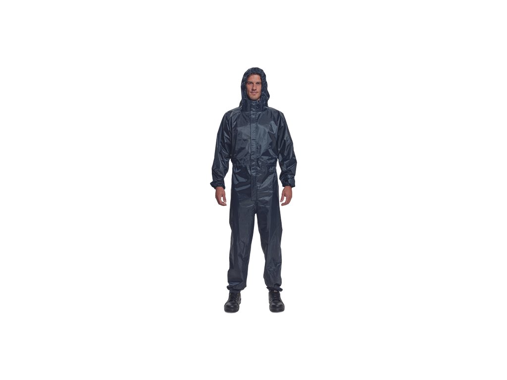 • voděodolný overal s kapucí • přední zapínání na zip kryté klopou na suchý zip • přelepené švy • elastický pas, lemy rukávů, nohavic a kapuce na gumičku