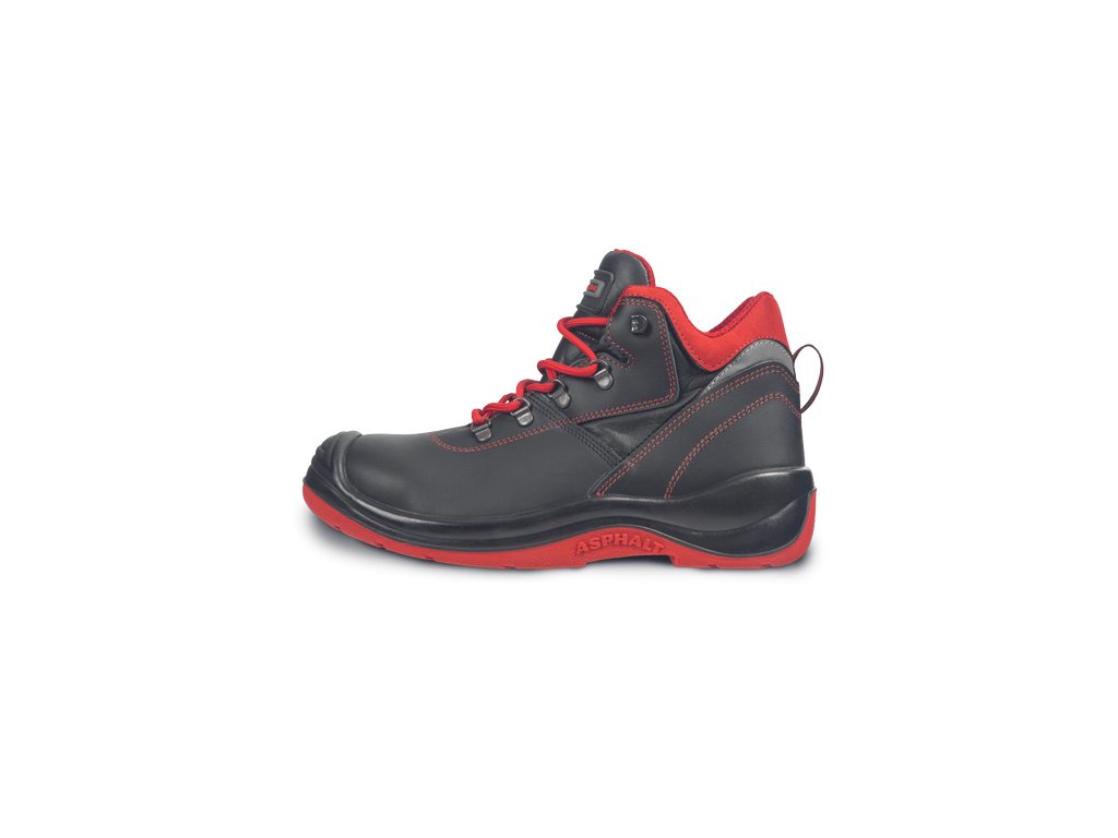 Kvalitní bezpečnostní obuv pro asfaltéry. Vyrobená dle požadavků asfaltérů - minimalistický dezén podešve pro maximální styčnou plochu, který předchází poškození nově položeného povrchu. Materiál podešve PU/pryž zajistí nepřilnavost materiálů s vysokou teplotou (HRO) až do 300 °C. Kompozitní bezpečnostní tužinka a stélka proti propichu. Odolný svršek z lícové hovězinové usně.