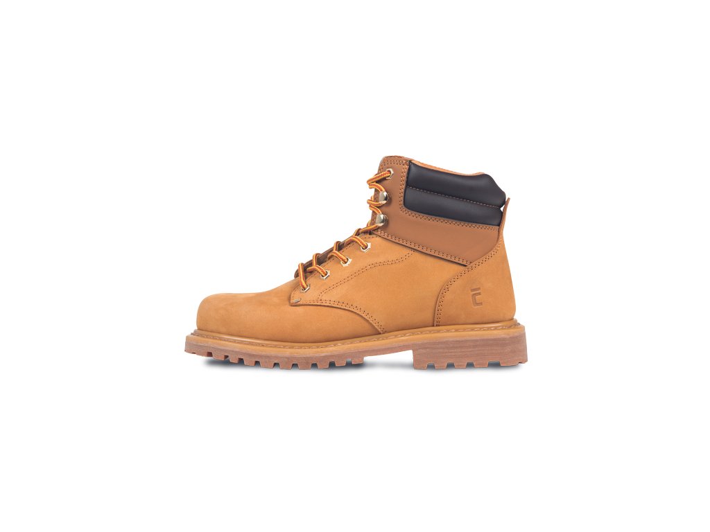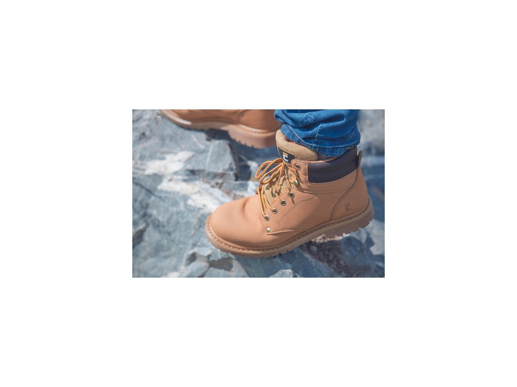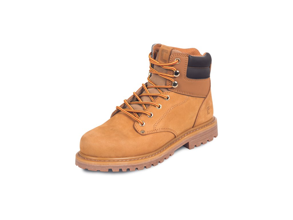 • kotníková pracovní obuv bez ocelové špičky • antistatická protiskluzová gumová podrážka odolná vůči oleji • absorpce energie v patě • vodotěsný prodyšný svršek z nubukové kůže