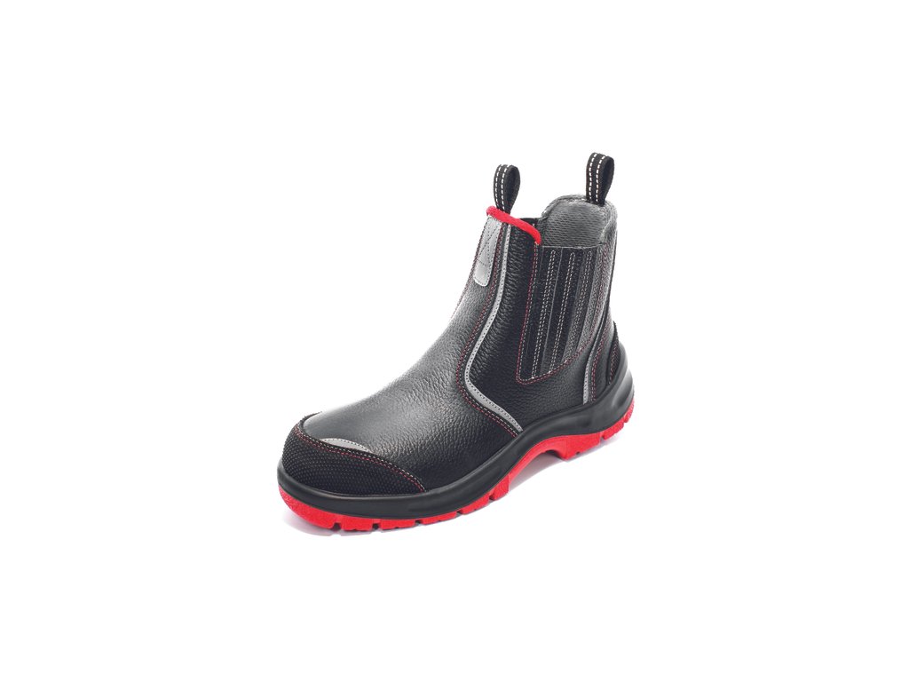 Bezpečnostní kotník s kompozitní tužinkou, která chrání před stlačením silou do 15 kN nebo pádem břemena o váze do 20kg z výšky 1m. Antistatická podešev vyrobena z dvouhustotního polyuretanu garantuje nejenom komfort, ale i bezpečí, díky protiskluzným vlastnostem podrážky, která je navíc rezistentní olejům a oděru. Chodidla jsou chráněna také ze spodu, a to díky kompozitní stélce proti propichu. Svršek obuvi je vyrobený z přírodní kůže Barton a vnitřní podšívka z prodyšného materiálu Airnet Mesh. Obuv neobsahuje kovové součásti. Tento model patří do kolekce Basic Neos a díky střihu svršku je vhodná pro slévače.