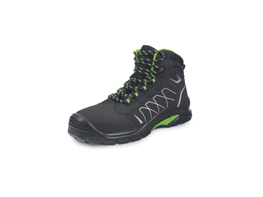 • moderní bezpečnostní kotníková obuv s kompozitní stélkou proti propichu a kompozitní tužinkou ve špici, která chrání před stlačením silou do 15 kN nebo pádem břemena o váze do 20 kg z výšky 1 m • antistatická podešev vyrobena z kombinace polyuretanu a velice odolné gumy garantuje nejenom komfort, ale i bezpečí díky protiskluzným vlastnostem podrážky, která je navíc rezistentní olejům a oděru • svršek obuvi je vyrobený z přírodní kůže „NUBUCK“ a vnitřní podšívka z prodyšného polyesteru • reflexní prvky garantují zvýšenou viditelnost uživatele • tento model je vybavený komfortní vnitřní stélkou, která díky gelové patě ještě lépe tlumí nárazy a přináší maximální pocit pohodlí během práce • tyhle boty vypadají jako sportovní obuv, ale přitom dokonale ochrání vaše nohy • v každé krabici je druhý pár tkaniček navíc