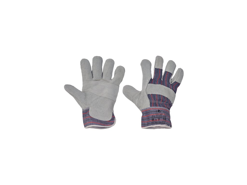 • rukavice vyrobené z jednoho kusu hovězí štípenky • v dlani s podšívkou • tkanina na hřbetu • celokožené palce a překryté špičky prstů