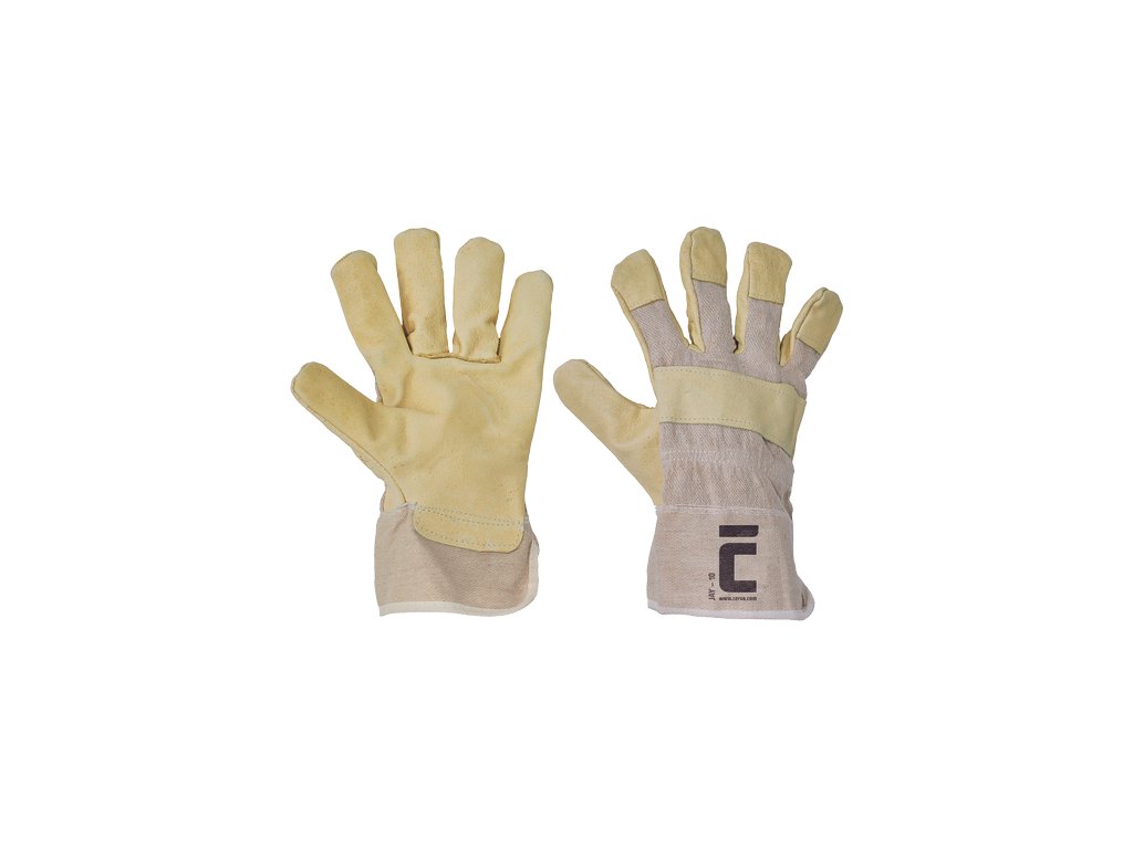 • rukavice z vepřové lícovky v dlani • s podšívkou a z tkaniny na hřbetu a manžetě • dlaň zhotovená z jednoho kusu kůže