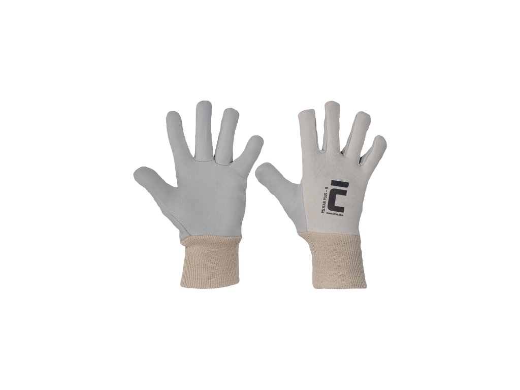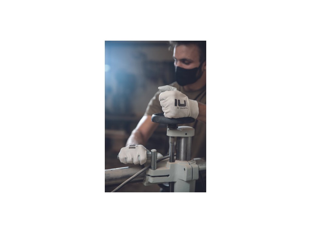 • rukavice šité z jemné lícové ovčiny v dlani • bílé bavlněné tkaniny na hřbetu • s nápletem