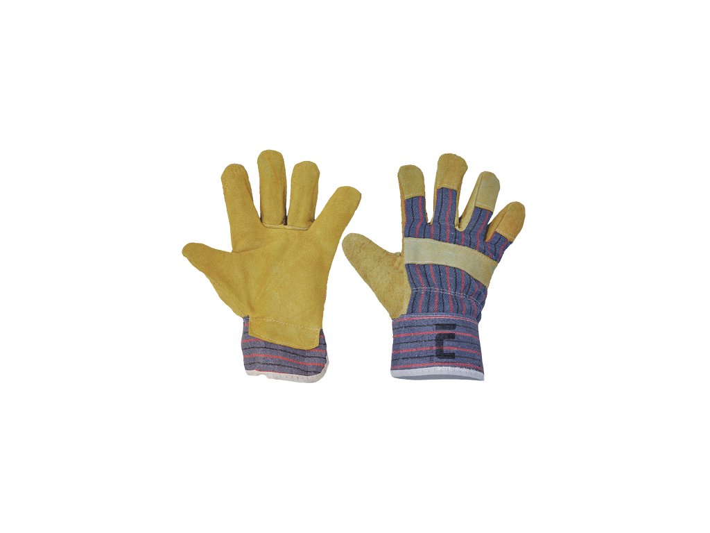 • rukavice z hovězí štípenky v dlani s podšívkou • hřbet a manžeta z bavlněné tkaniny