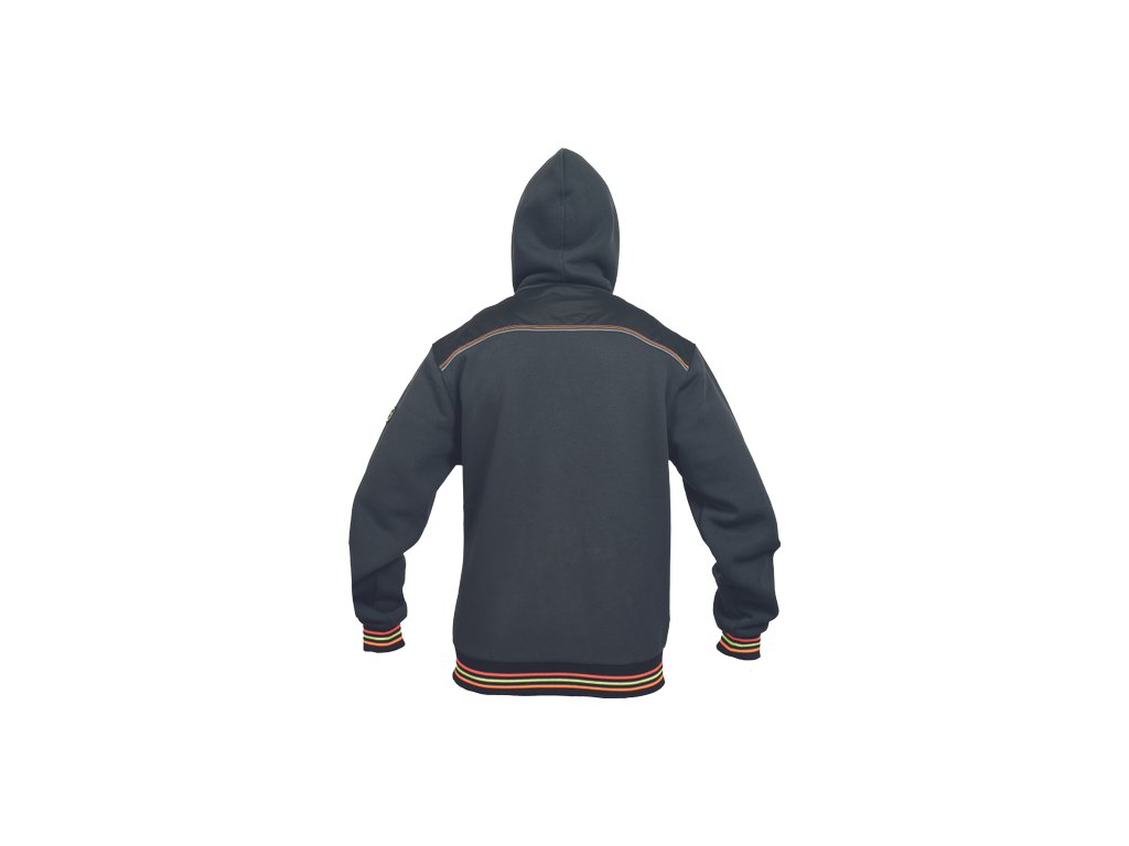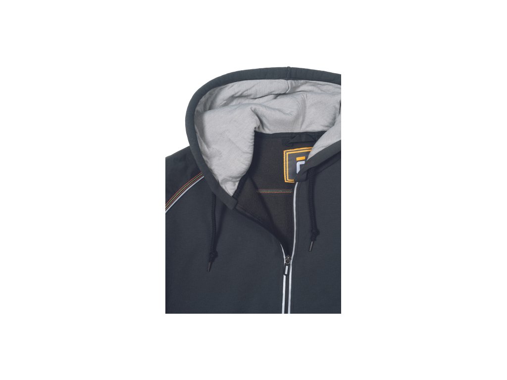 • pánská celopropínací mikina s kapucí ze směsového úpletu bavlny a polyesteru zevnitř nepočesaná • zesílená oblast ramen a loktů • reflexní paspulka lemující sedlo a lištové kapsy • dvojitá kapuce s nastavením obvodu pomocí šňůrky • trojité dekorativní prošití • pružné náplety na rukávech a spodním obvodu