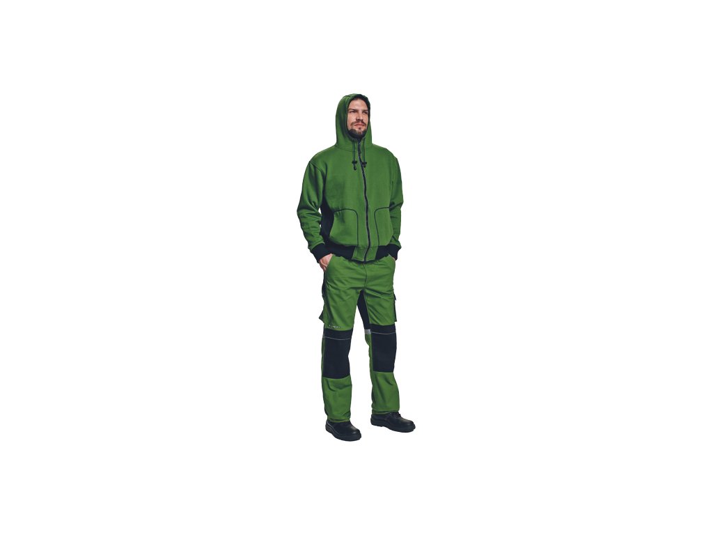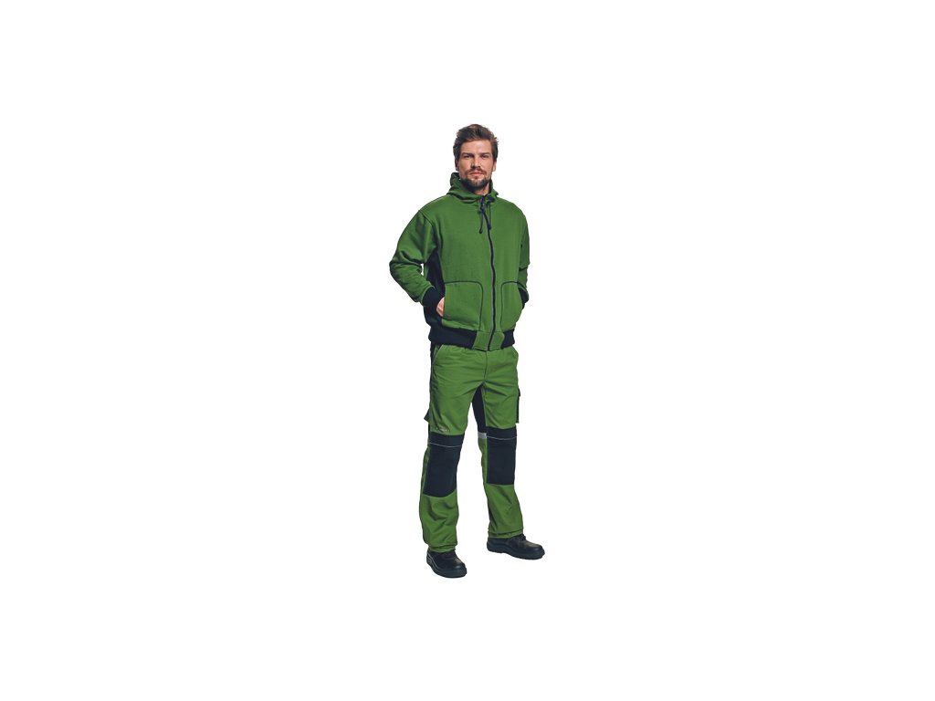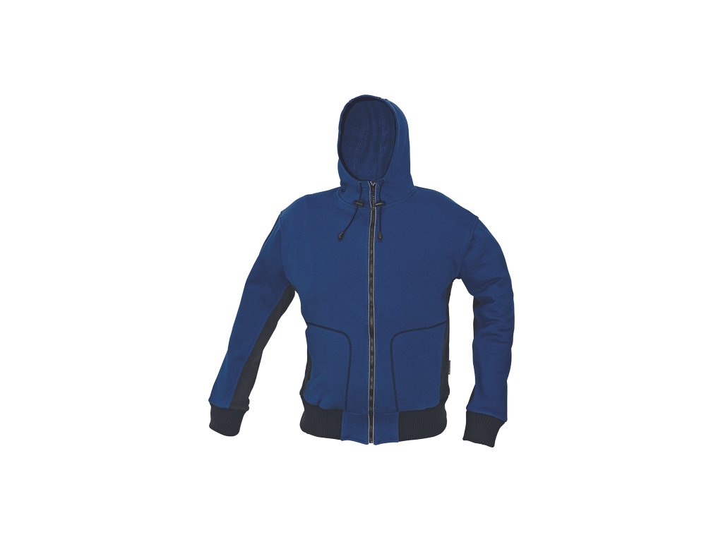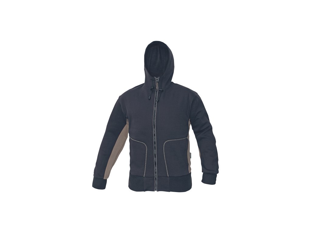 • mikina s nastavitelnou kapucí pomocí stahovací šňůrky a zapínáním na zip • 2 přední velké kapsy • spodní lem a manžety rukávů z extra širokého žebrovaného úpletu s příměsí elastanu