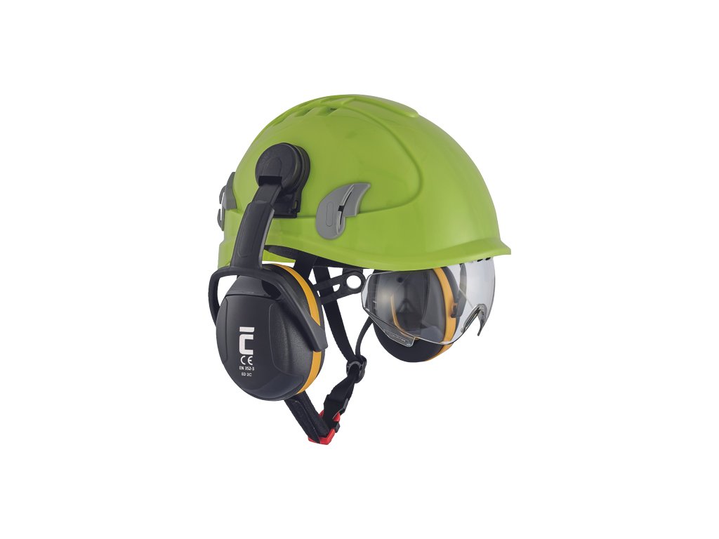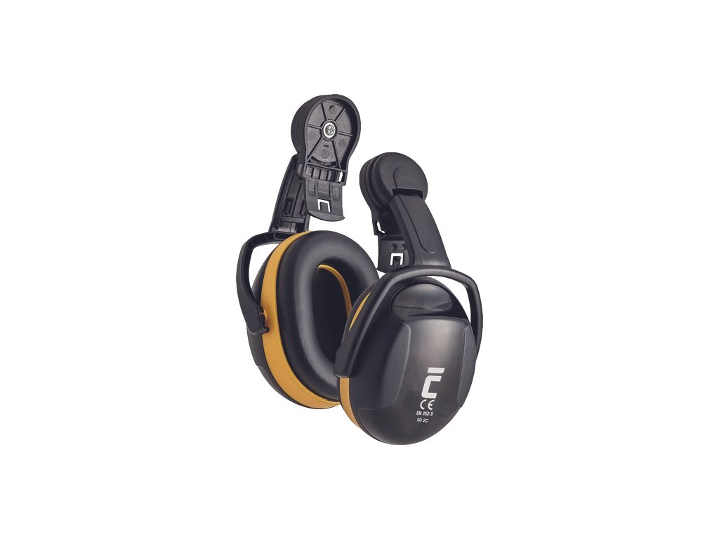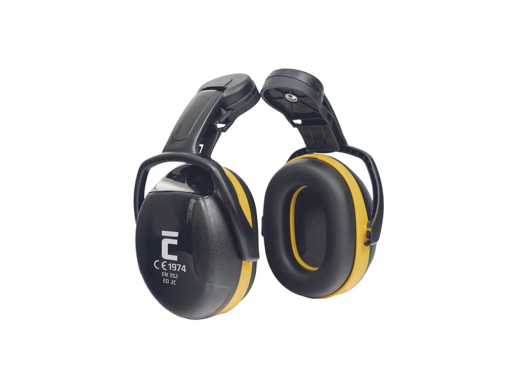 výkonné dielektrické mušlové chrániče sluchu s upevněním na ochrannou přilbu (štěrbina 30 mm), se snadno nastavitelným a stabilním teleskopickým upravením velikosti, s pěnou plněnými těsnícími polštářky