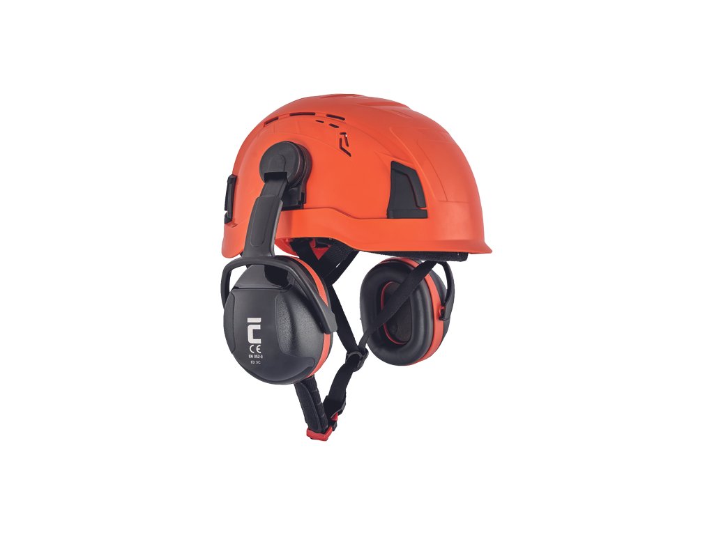 vysoce výkonné dielektrické mušlové chrániče sluchu s upevněním na ochrannou přilbu (štěrbina 30 mm), se snadno nastavitelným a stabilním teleskopickým upravením velikosti, s pěnou plněnými těsnícími polštářky