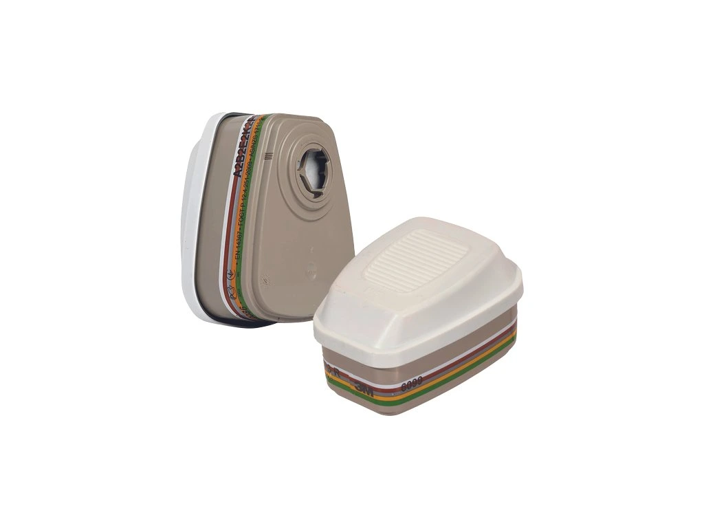 filtr ABEK2P3 chrání před organickými výpary, anorganickými a kyselými plyny, čpavkem a deriváty, částicemi