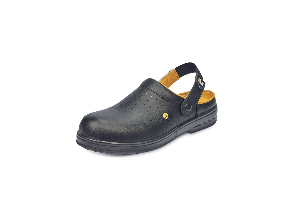 OB SRC Pracovní ESD sandály s páskem přes patu ze syntetického materiálu s vysokými mikroporézními vlastnostmi. PU podrážkou rezistentní olejům a s lepšími protiskluzovými parametry.