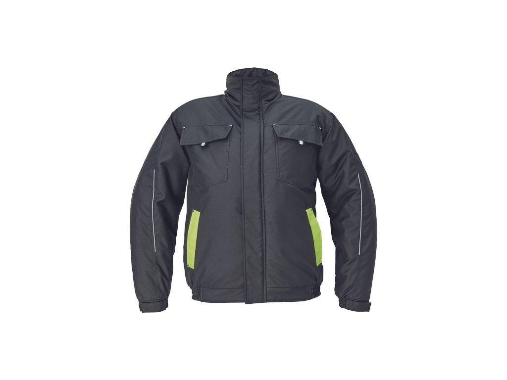 • pánská zimní pilot bunda • pružný pas • zapínání na zip kryté légou na suchý zip • kapuce složená v límci • 2 boční kapsy • 2 náprsní kapsy na suchý zip • 1 vnitřní kapsa na mobilní telefon • elastické manžety rukávů se suchým zipem • reflexní prvky