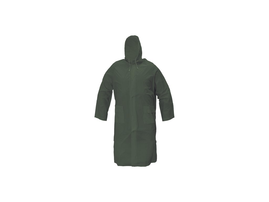 • voděodolný ochranný plášť s kapucí • odlehčený materiál z měkčeného PVC bez textilní mřížky • prodloužená délka pod kolena • všechny spojovací švy jsou zatavené • dvě přední kapsy kryté légami proti průniku vody • spodní část rukávů lze regulovat drukem • ventilace na zádech a v podpaží