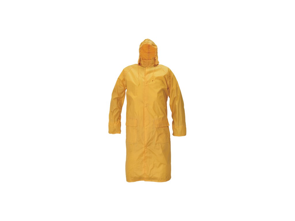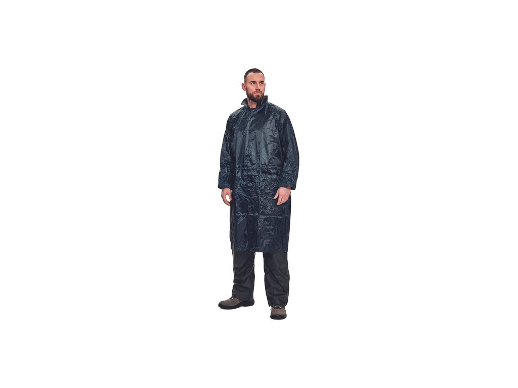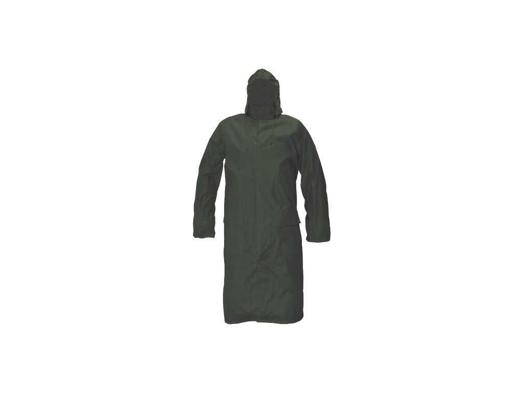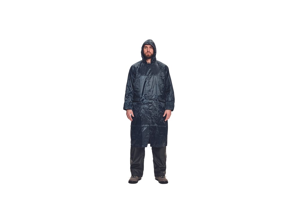 • voděodolný ¾ plášť s integrovanou kapucí, prodloužená délka • plášť má přelepené švy • dvě přední kapsy kryté légami proti průniku vody • vnitřní manžeta do gumy • ventilace na zádech a v podpaží • praktické balení