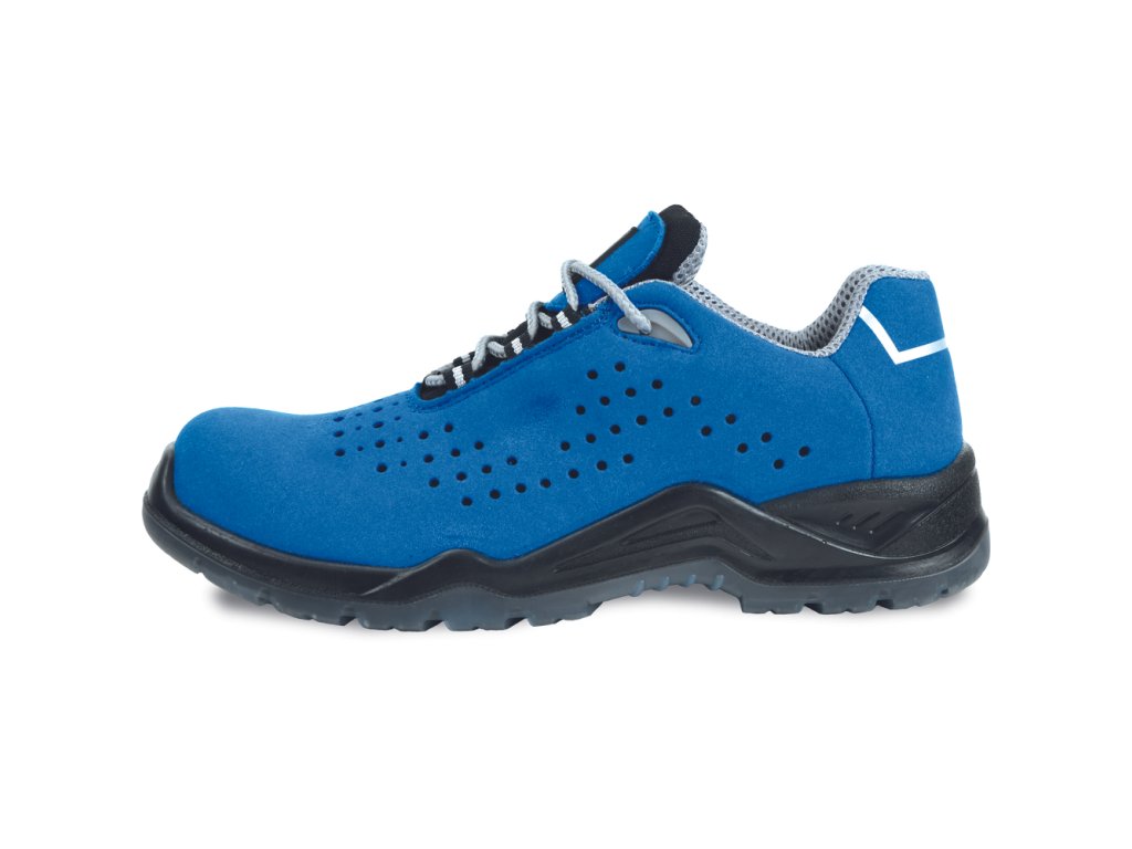 • bezpečnostní polobotka v moderní modro-černé barevné kombinaci • svršek obuvi je vyrobený z mikrovlákna a perforovaný po cele délce • protiskluzová podešev odolná olejům je vyrobena z polyuretanu a transparentního termopolyuretanu • podešev zajišťuje nejenom komfort, ale také maximální jistotu při každém kroku • obuv je vybavena komfortní, perforovanou vnitřní stélkou, která garantuje pohodlí a cirkulaci vzduchu uvnitř boty • absorpce energie v oblasti paty tlumí nárazy a omezuje pocit únavy nohou • díky bezpečnostní kompozitní tužince obuv splňuje požadavky normy EN ISO 20345:2011 • chodidla jsou chráněna před stlačením silou do 15 kN nebo pádem břemena o vaze do 20kg z výšky 1m • chodidla jsou chráněna také ze spodu, a to díky kompozitní stélce, proti propichu • obuv neobsahuje kovové součásti a je vybavena funkcí ESD • proto je to ideální model pro vnitřní prostory a citlivé prostředí, kde je potřeba zabránit vzniku jisker z elektrostatického výboje anebo pro prostory vybavené bezpečnostním rámem • díky minimalistickému designu se tento model bude skvěle hodit k většině kolekcí pracovních oděvů Cerva