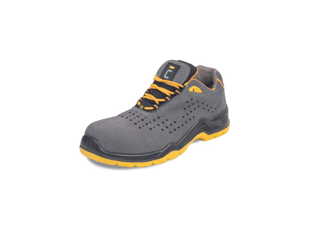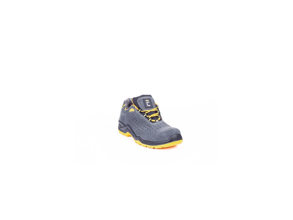 • bezpečnostní polobotka v moderní šedo-žluté barevné kombinaci • svršek obuvi je vyrobený z nubuk kůže a perforovaný po cele délce • protiskluzová podešev odolná olejům je vyrobena z dvouhustotniho polyuretanu a zajišťuje maximální jistotu při každém kroku • obuv je vybavena komfortní, perforovanou vnitřní stélkou, která garantuje pohodlí a cirkulaci vzduchu vevnitř boty • absorpce energie v oblasti paty tlumí nárazy a omezuje pocit únavy nohou • díky bezpečnostní kompozitní tužince obuv splňuje požadavky normy EN ISO 20345:2011 • chodidla jsou chráněna před stlačením silou do 15 kN nebo pádem břemena o vaze do 20kg z výšky 1m • chodidla jsou chráněna také ze spodu a to díky kompozitní stélce proti propichu • obuv neobsahuje kovové součásti a je vybavena funkcí ESD • proto je to ideální model pro vnitřní prostory a citlivé prostředí, kde je potřeba zabránit vzniku jisker z elektrostatického výboje anebo pro prostory vybavené bezpečnostním rámem • díky minimalistickému designu se tento model bude skvěle chodit k většině kolekcí pracovních oděvů Cerva
