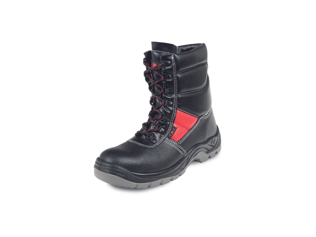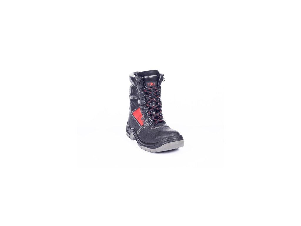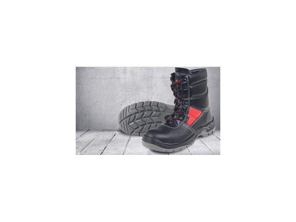 Bezpečnostní vysoká obuv s kovovou tužinkou a stélkou proti propichu. PU/PU antistatická podrážka rezistentní olejům, absorpcí energie v patě. Voděodolný svršek z embosované štípané kůže. Zateplené umělou kožešinou.