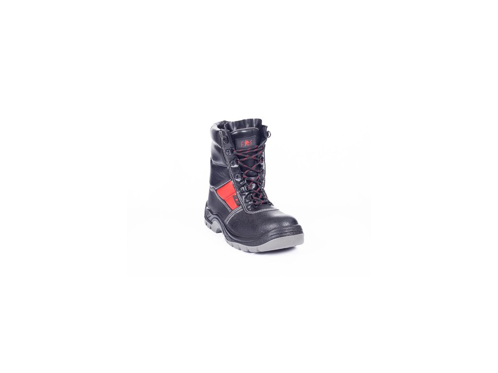 Bezpečnostní vysoká obuv s kovovou tužinkou a stélkou proti propichu. PU/PU antistatická podrážka rezistentní olejům, absorpcí energie v patě. Voděodolný svršek z embosované štípané kůže.