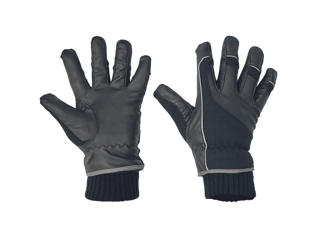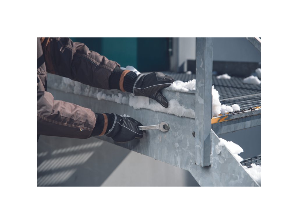 • zimní zateplené nepromokavé rukavice s prodyšnou membránou • dlaň polyester-PU • hřbet z pružného nylonového úpletu zesíleného PU koženkou • podšívka v dlani polyester/bambus • na hřbetu polyesterový izolační materiál • zateplení Thinsulate 40 g • reflexní doplňky
