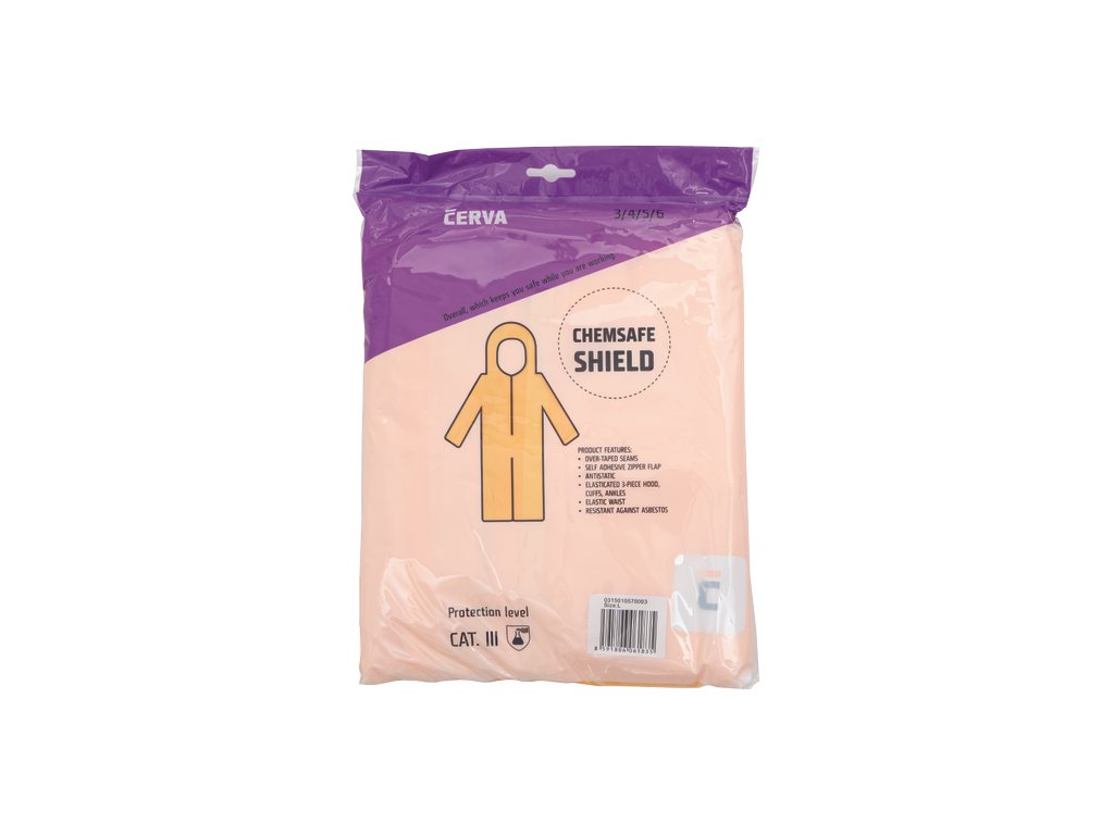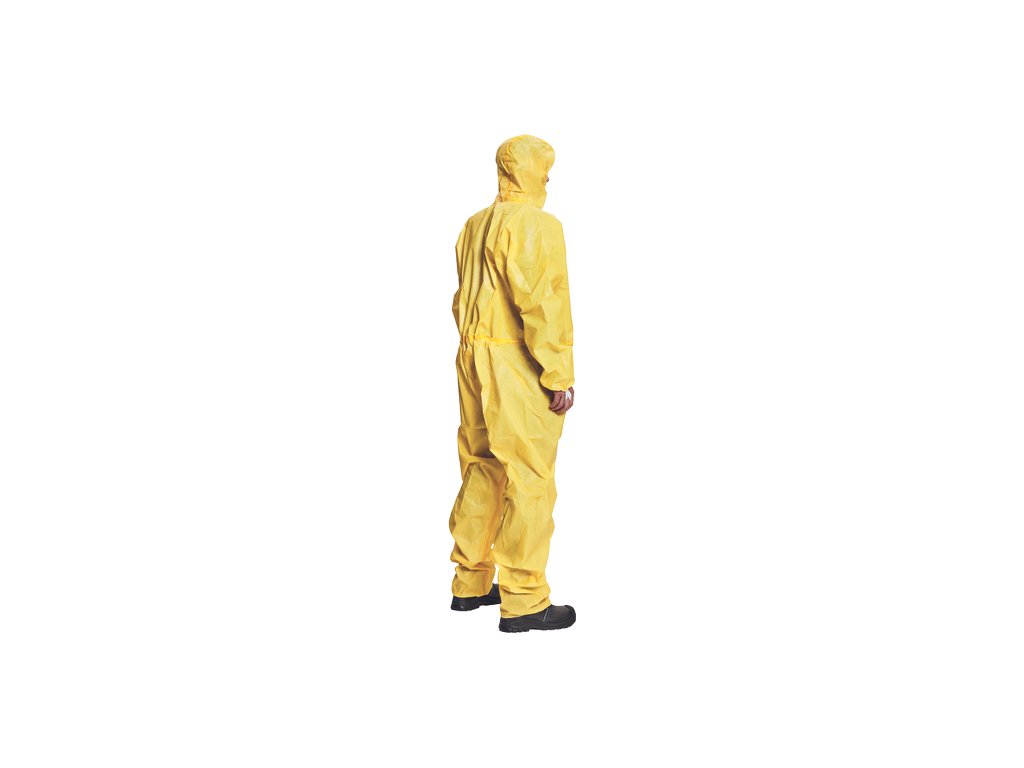 • ochranná antistatická jednorázová kombinéza s kapucí vhodná pro ochranu proti nebezpečným mirkoorganizmům s nepropustnou ochrannou vrstvou • vyrobena z 100 % polypropylenu s polyethylenovou vrstvou, přelepené švy, samolepící klopa na zip, gumičkou stahovatelnými rukávy a nohavicemi • na konci manžet jsou umístěny poutka na palce, aby rukávy vždy perfektně seděly na rukou • v ochraně proti postřiku kapalnými chemikáliemi patří do kategorie CE III • v ochraně proti kapalným aerosolům kategorie typu 4B • v ochraně proti průniku pevných částic a ochraně proti aerosolům typu 5B • v ochraně proti postřiku kapalnými chemikáliemi typu 6B • v ochraně proti kontaminaci radioaktivními částicemi do kategorie Class 2