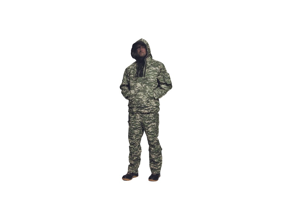 • speciální oblek vyvinutý na ochranu proti roztočům, komárům, muškám, klíšťatům a dalšímu hmyzu • perfektní utěsnění vnitřních manžet rukávů a nohavic • 1 přední kapsa klokanka • 1 kapsa na levém rukávu • obličejová krycí síťka složitelná do náprsní kapsy