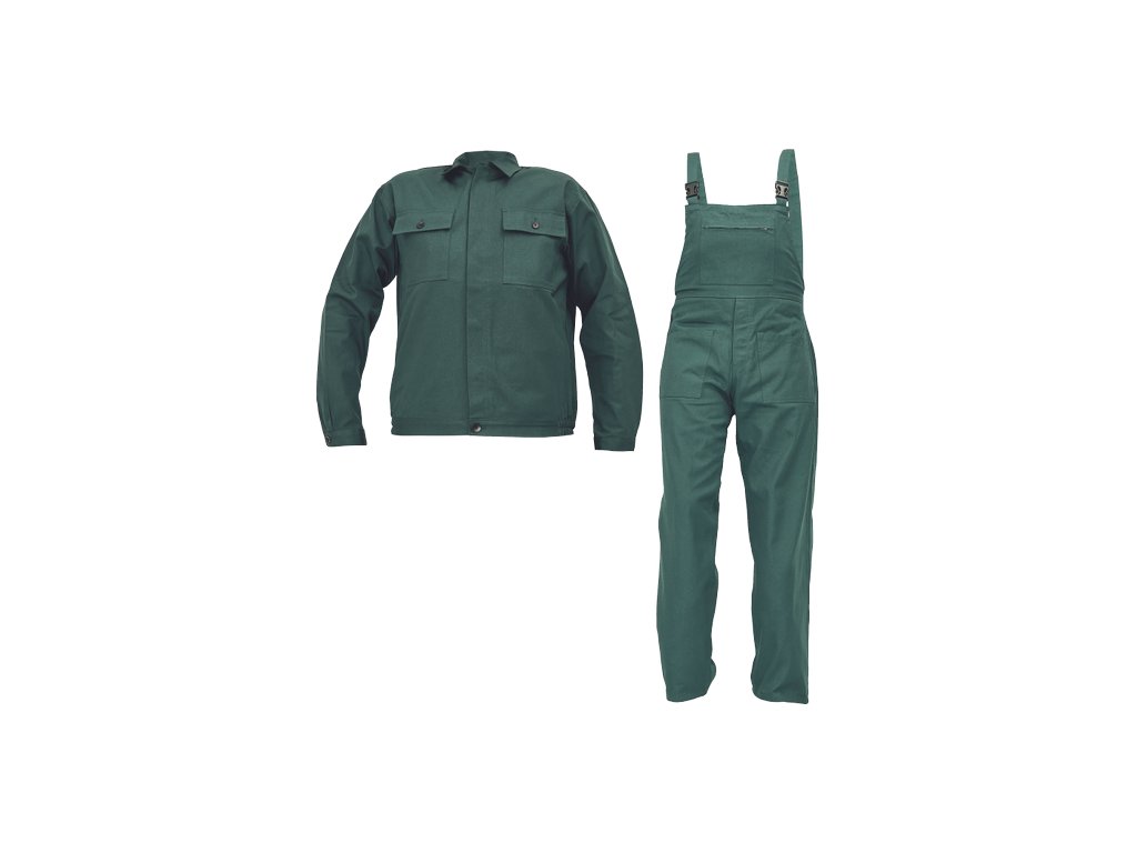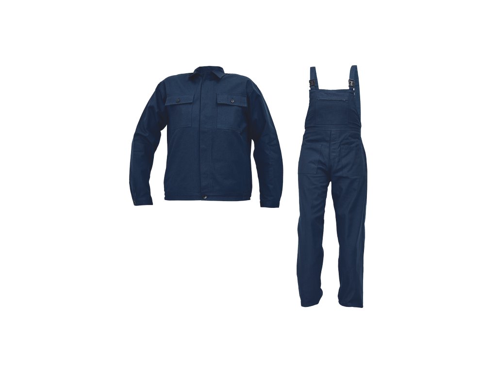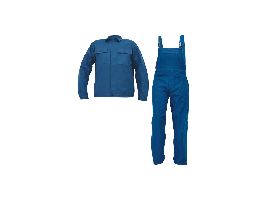 • pánská pracovní souprava • BUNDA - s límcem a zapínáním na knoflíky • 2 náprsní kapsy • KALHOTY S LACLEM - 2 přední kapsy • 1 náprsní kapsu • 1 boční kapsu na metr